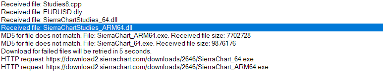 Unable to download Current Version | Stuck at SierraChartStudies_64.dll | MD5 does not match