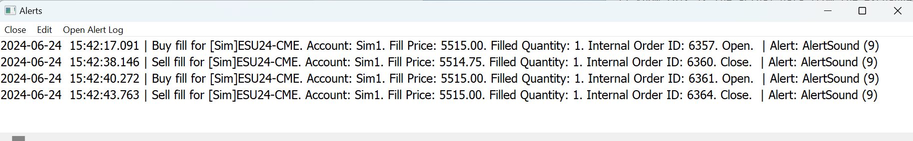 Thanks for the image, we were definitely NOT on the same page. We thought you were referring to the Order Confirmations. Those do not look like our notifications. There is a pop-up window option for Alerts, and Order Fills can be setup to have an alert signal when there is a fill. But our alert pop-up looks like the image attached. Even with color and theme modifications, there is no way to get our pop-up alert to look like what you have showing. The one thing we can recommend is to set the option for "Trade >> General Trade Settings >> Notifications >> Play Alert When Order Filled" to "No Alert Sound" For the most reliable, advanced, and zero cost futures order routing, use the Teton service: Sierra Chart Teton Futures Order Routing |