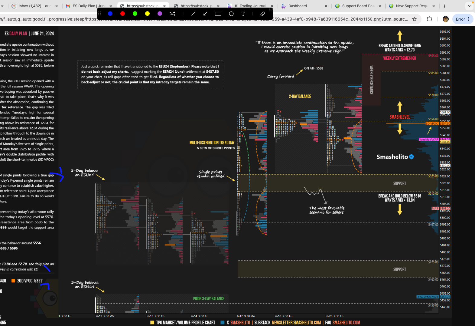 He is using the September contracts, but still has ESM24 up on the same chartbook