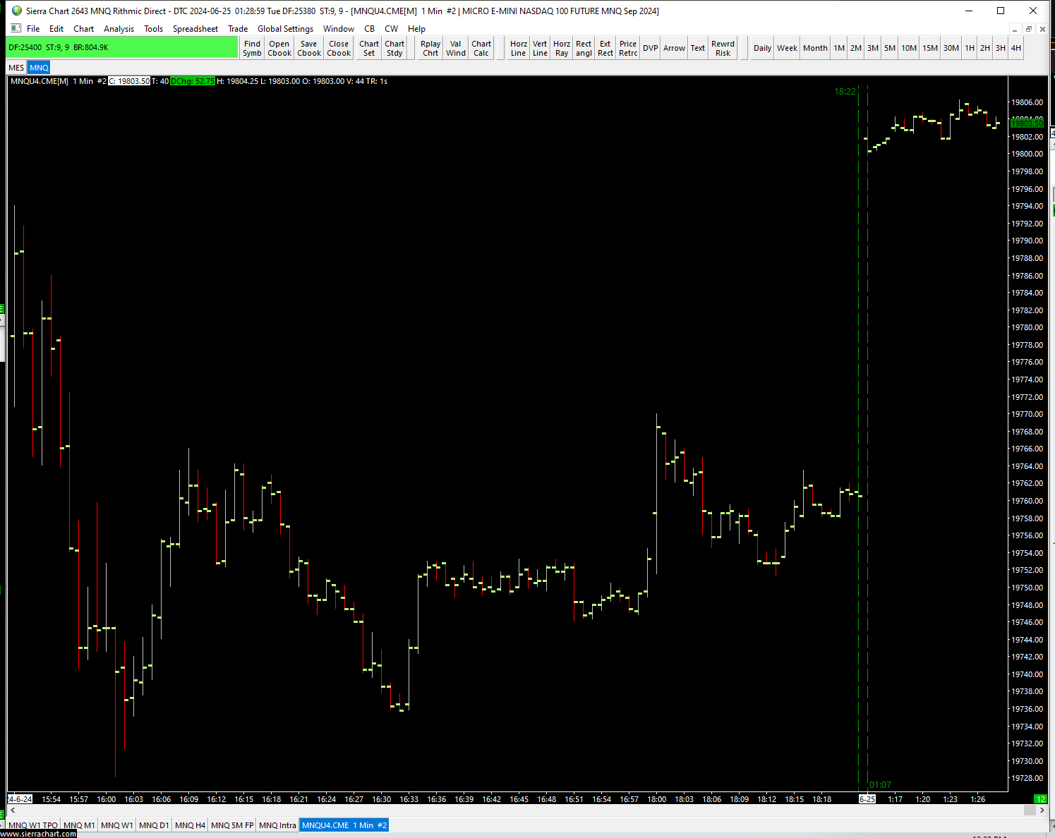 Your log shows that it is only downloading historical data to 2024-06-24 18:22:20.551004. Which is very odd. It should be loading to the current time. We just want to repeat the process one more time to see if we get the same result. Please do the following for us: - Open the chartbook (if not already open) that has the chart for MESU4.CME - Clear your Message Log by following these instructions: Message Log: Clearing the Message Log - With the MESU4.CME chart active, select "Edit >> Delete All Data and Download". - Wait for the data to fully download, then immediately post your Message Log to this thread by following these instructions: Support Board Posting Information: How to Post Your Message Log (Required In Some Cases) For the most reliable, advanced, and zero cost futures order routing, use the Teton service: Sierra Chart Teton Futures Order Routing |