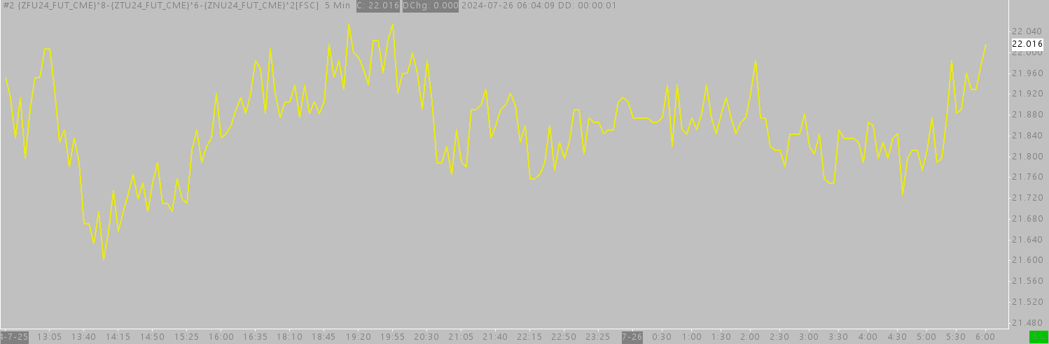 <settings> <symbol>{ZF-202409-CBOT}*-8+{ZT-202409-CBOT}*6+{ZN-202409-CBOT}*2</symbol> <description>5Y FLY</description> <category>0_BondSpreads</category> <security-type>futures</security-type> <currency-value-per-tick>1</currency-value-per-tick> <supports-market-depth>false</supports-market-depth> <uses-formula-operators>true</uses-formula-operators> <download-historical-data-for-formula-symbol>true</download-historical-data-for-formula-symbol> <is-custom-symbol>true</is-custom-symbol> </settings> I get this issue with many created instruments. But above is the instrument related to the yellow line in the image. |