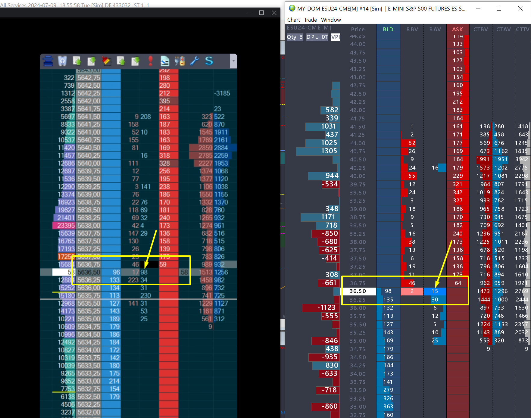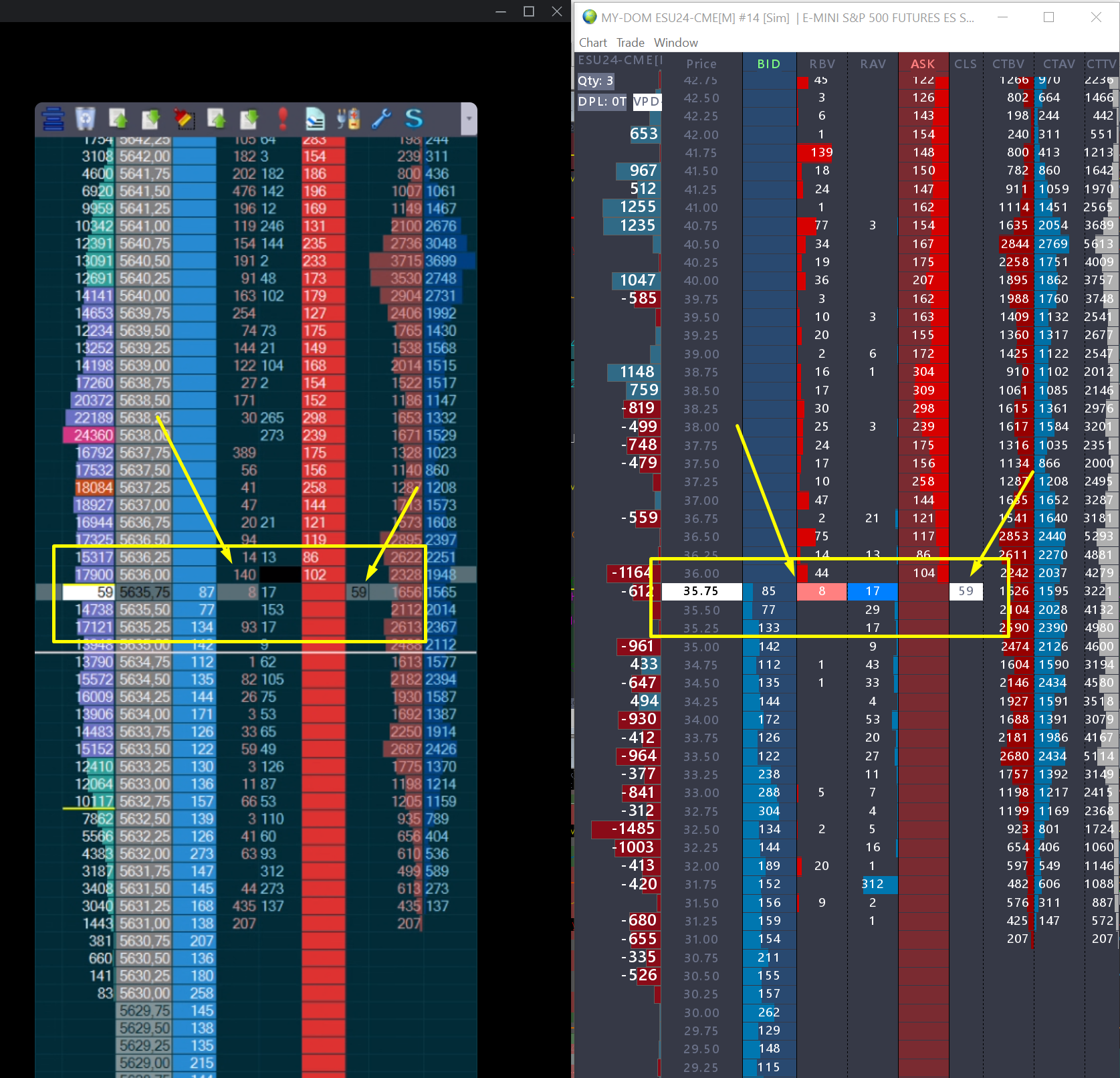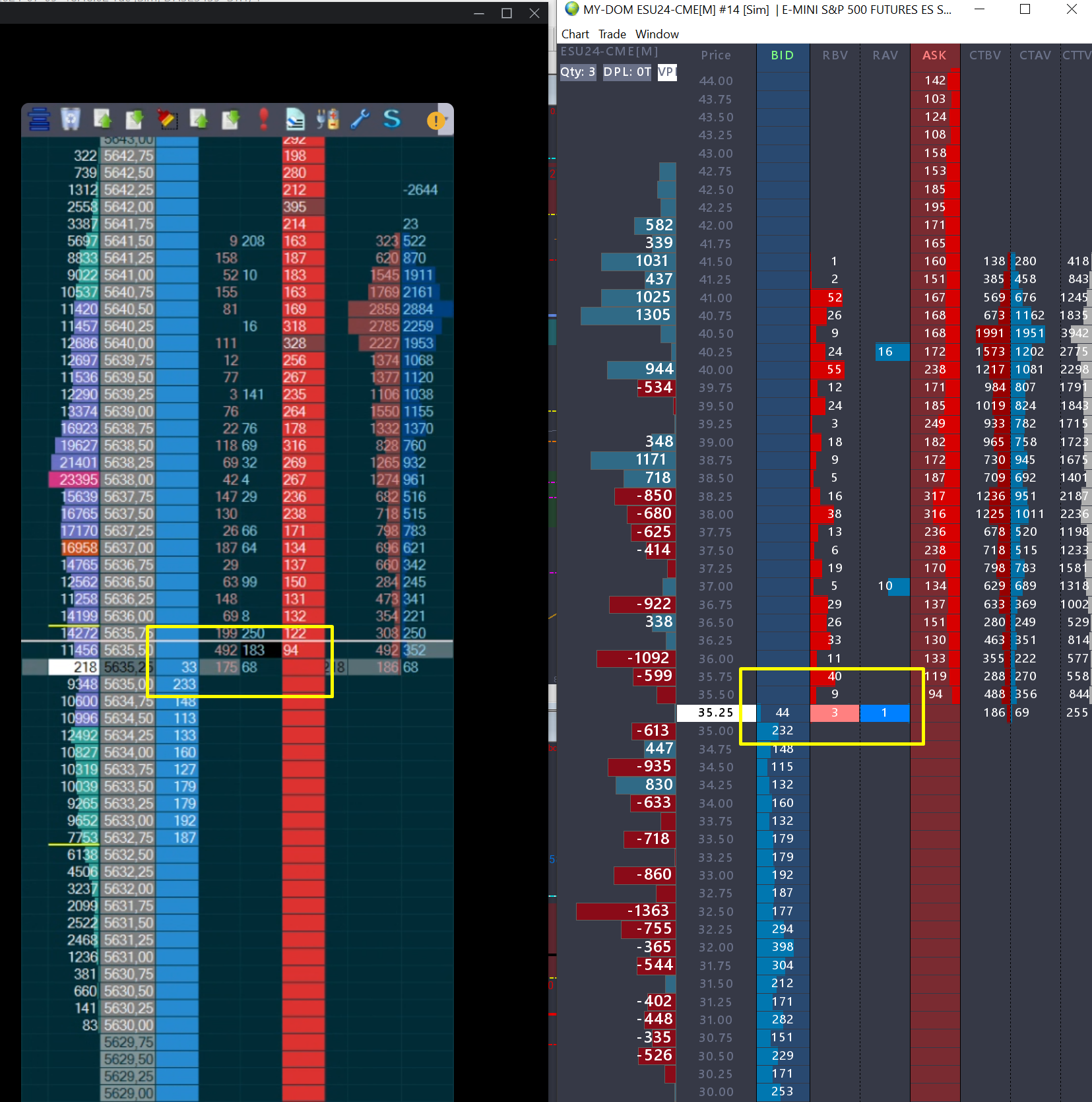 We can not make comparisons to other systems as we can not say how they do things. The Market Depth data is what is given to us by the exchange. There is no special "calculation" to it. Keep in mind that in either case, what you are seeing is a snapshot at that moment, so it would not be unusual for there to be small differences just due to how each system handles the timing of the updates. With regards to the Recent Bid/Ask Volumes, we can only point you to what this represents in our system, which is defined here: Global Trade Settings Windows: Recent Bid Volume - Left/Center/Right Aligned For the most reliable, advanced, and zero cost futures order routing, use the Teton service: Sierra Chart Teton Futures Order Routing |