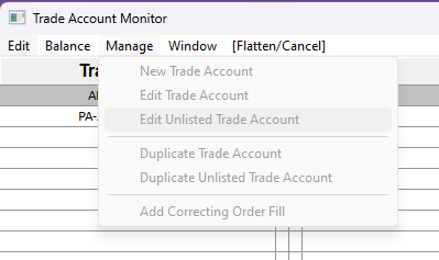 Unable to edit an account from the Trade Account Monitor