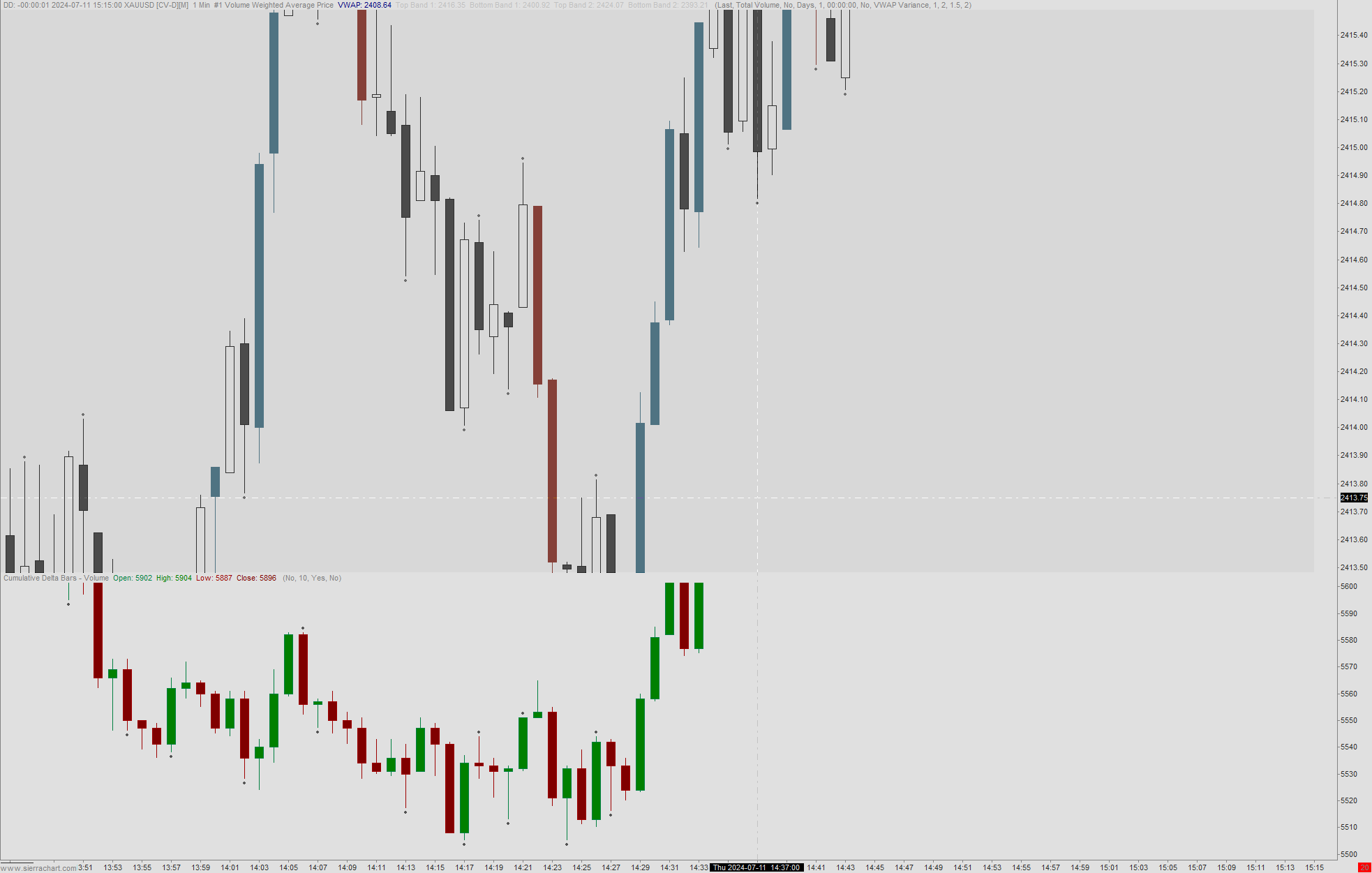 It is next to impossible for us to tell changes from screenshots. For information about changing Cumulative Delta Bars - Volume, refer to: Cumulative Delta Bars - Volume: Resolving Cumulative Delta Bars Differences If there are changes with the XAUUSD 1 minute data. Tell us the specific date and time and time zone where you see differences. Sierra Chart Support - Engineering Level Your definitive source for support. Other responses are from users. Try to keep your questions brief and to the point. Be aware of support policy: https://www.sierrachart.com/index.php?l=PostingInformation.php#GeneralInformation For the most reliable, advanced, and zero cost futures order routing, use the Teton service: Sierra Chart Teton Futures Order Routing Date Time Of Last Edit: 2024-07-12 21:43:24