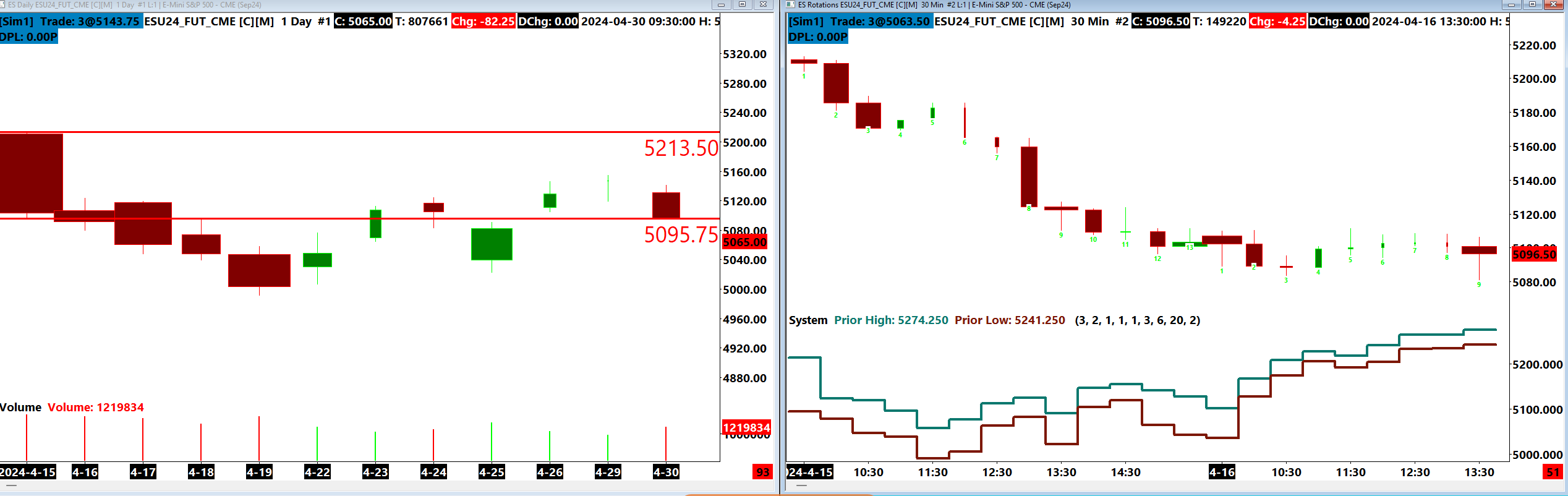 I also noticed that the data over the period in which data is retrieved, isn't correct. For example, in the attached screenshot, the reference chart(#1) is on the left, and the primary chart(#2) on the right. These are the only two charts in the chartbook. The study is attempting to retrieve the prior day's high and prior day's low for the 15th. The frame of the primary chart is on the 16th which indicates that the prior high should be 5213.50 and prior low should be 5095.75 The study is showing an incorrect prior high and low. How is this possible when there are only two charts in the chartbook? |