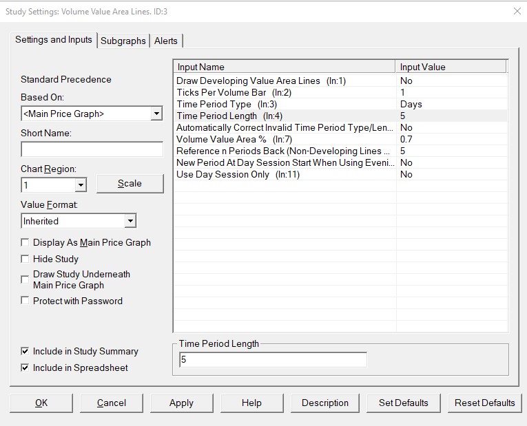 I'm looking to add 5 day composite VA and POC to a chart (t-5 through t-1, not including current day). I've read (and re-read) the settings and believe I'm getting the wrong output on the chart. settings in attached file, what am I getting wrong?