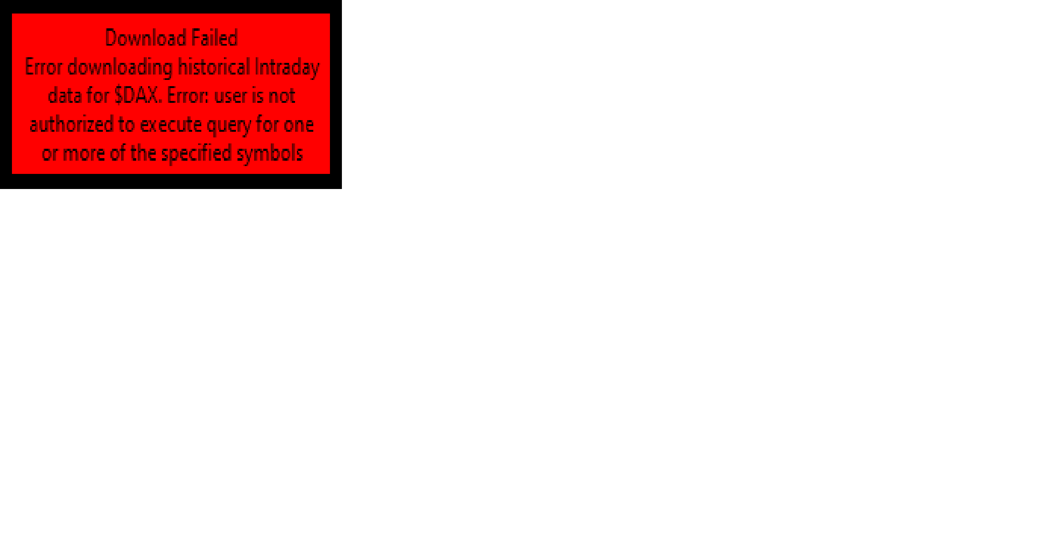 Since Tuesday, July 9, 2024, I have not received any more information to date. Despite having payments covered until December. Observe the error message that appears in the graph in the attached file. There have been changes to the data we have available from our provider. $DAX is no longer available, and it ended on July 9, 2024, which is why you only have data to that point. For DAX, however, we have CFD data for the symbol DAX30, which can be used in place of the $DAX index. Another option is to track the DAX Futures. We offer EUREX data (for a fee), so you can get the data from us by following these instructions: Denali Exchange Data Feed: *Setup Instructions: All Other Exchanges* For the most reliable, advanced, and zero cost futures order routing, use the Teton service: Sierra Chart Teton Futures Order Routing |