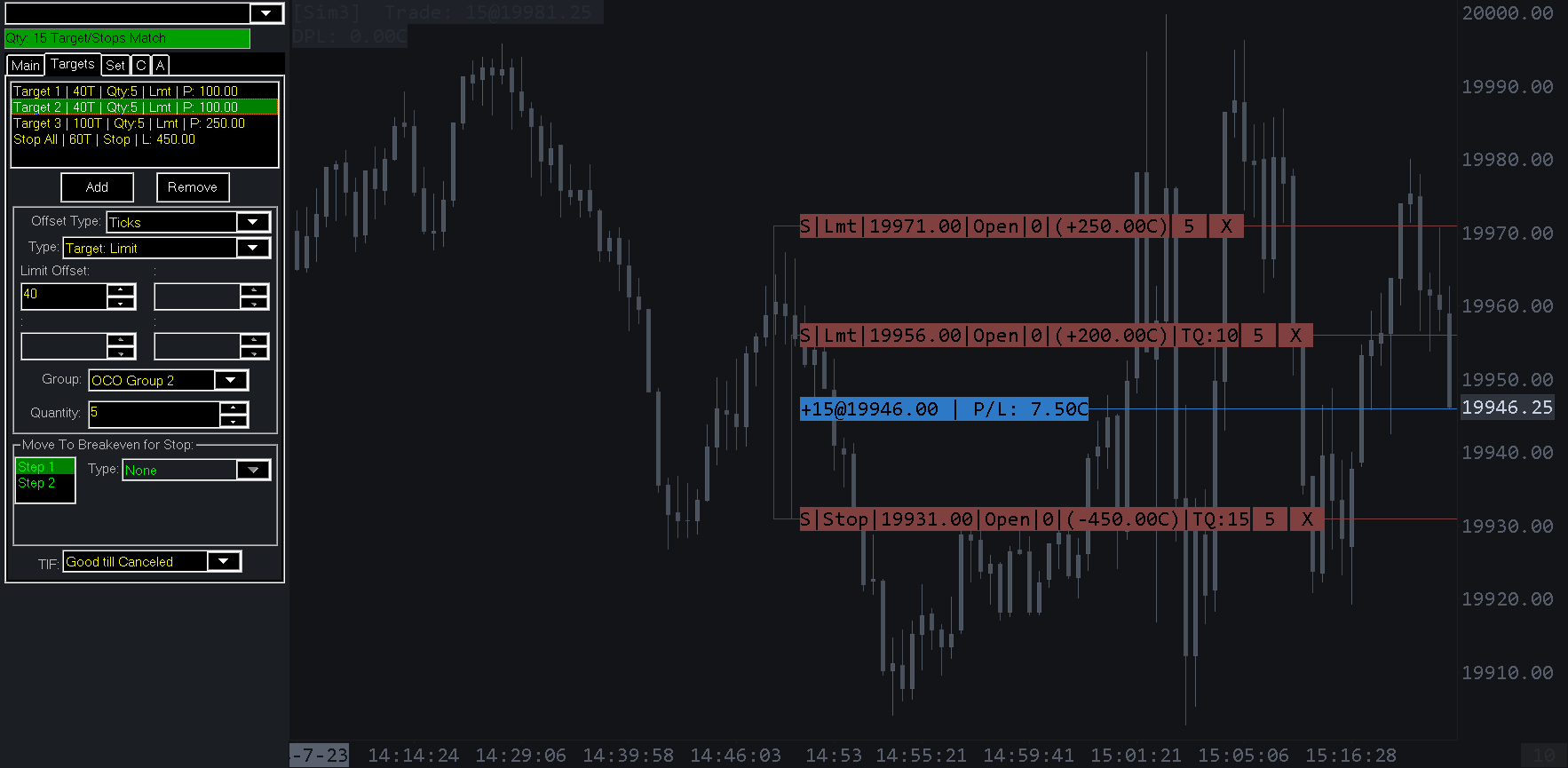 Adding to this, when adjusting target positions, overlaying it on another target does not add the total currency value together as it does when trading the main symbol. Granted this is conducted all in Sim |