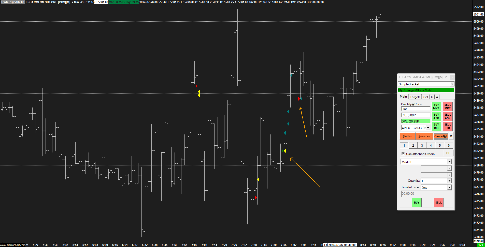 Opening and closing positions is inaccurately showing fills on both sides. Meaning, if I start a long position it shows my long order fill as well as a buy to cover fill. Then when I close the long position it shows an opening short fill as well. It's almost like Sierra thinks there is always 1 contract open when I'm flat that needs to be rectified. My order positions window is blank. In the attached screenshot, I closed a long position, but the order fills show that I have opened a short position. The trade window shows that I'm flat. I was able to remove the weird fills by going to chart settings > trading > show fills for current day only. But then I can't go back and review previous days. Is there anyway I can reset Sierra? https://www.sierrachart.com/image.php?Image=1722009357178.png |
