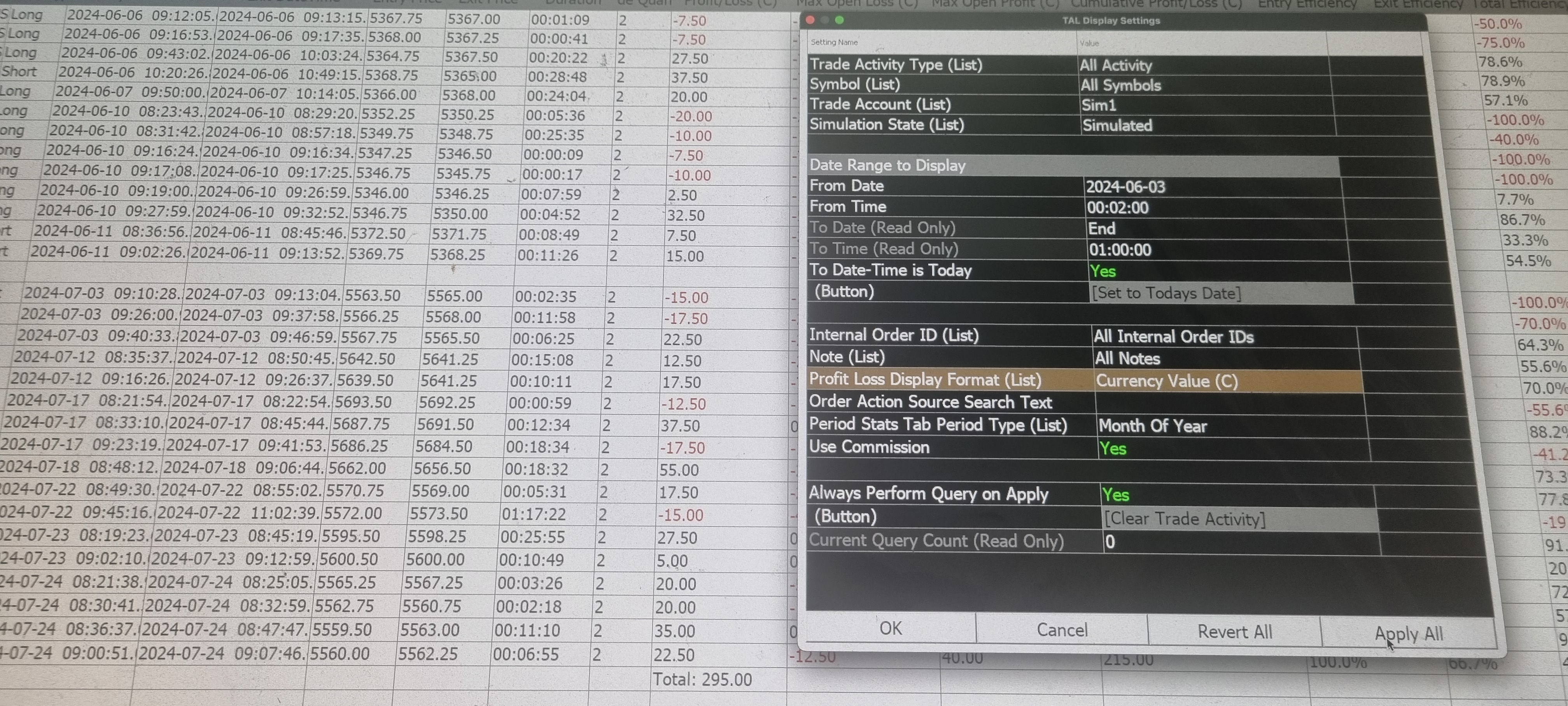 We just tested now the Trade Activity Log and do not see any issue. Are you running Sierra Chart, under another operating system other than Windows? Sierra Chart Support - Engineering Level Your definitive source for support. Other responses are from users. Try to keep your questions brief and to the point. Be aware of support policy: https://www.sierrachart.com/index.php?l=PostingInformation.php#GeneralInformation For the most reliable, advanced, and zero cost futures order routing, use the Teton service: Sierra Chart Teton Futures Order Routing |