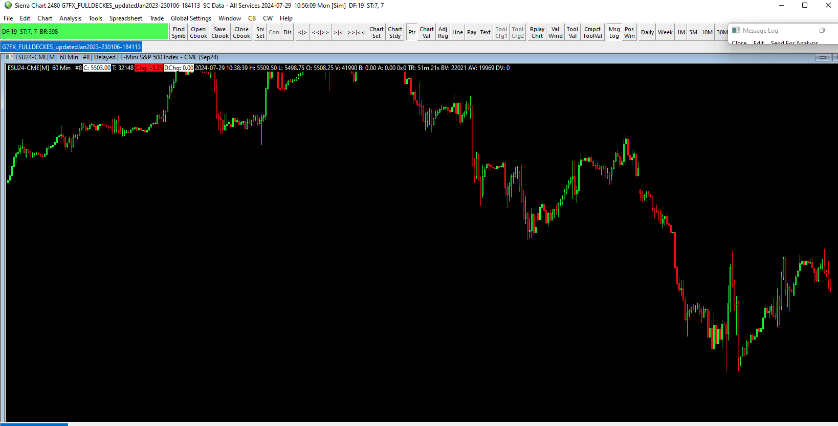 Follow the instructions here to clear the Message Log: Message Log: Clearing the Message Log Close all of the Chartbooks with "File >> Close All Chartbooks". Open a single chart for the symbol you have an issue with through "File >> Find Symbol". Tell us that symbol of the chart. Tell us about *one* symbol only. Disconnect from the data feed with "File >> Disconnect". Connect to the data feed with "File >> Connect to Data Feed". After the connection and after about 10 seconds, provide a copy of the Message Log following these instructions: Support Board Posting Information: How to Post Your Message Log (Required In Some Cases) We will then determine what the problem is. Sierra Chart Support - Engineering Level Your definitive source for support. Other responses are from users. Try to keep your questions brief and to the point. Be aware of support policy: https://www.sierrachart.com/index.php?l=PostingInformation.php#GeneralInformation For the most reliable, advanced, and zero cost futures order routing, use the Teton service: Sierra Chart Teton Futures Order Routing |