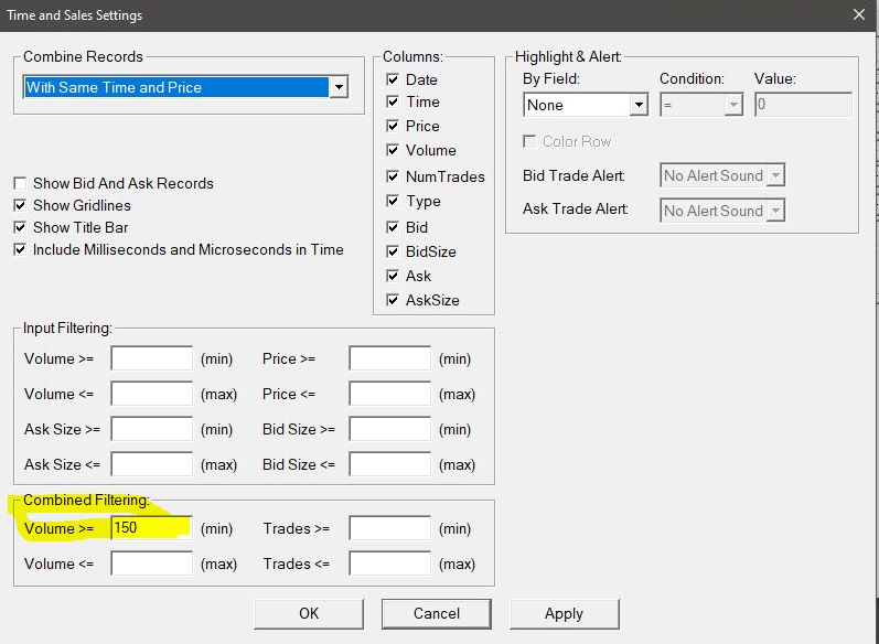 In the latest Sierra Chart versions, the top row (latest trades) of time and sales is no longer filtered. It is showing trade volume below the filter limit. I did not change any setting and I attached screenshots. Date Time Of Last Edit: 2024-07-30 00:53:18