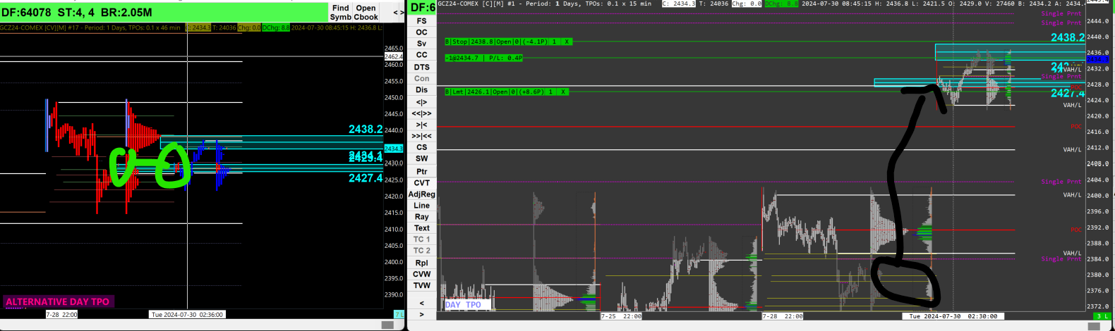 I am having trouble with my tpo chart when i had carried a symbol rollover on gold futures today. I have attached the screenshot of what I mean. On the candle stick is shows price opening today near yesterdays close. however on my tpo chart today tpo has jumped drastically higher from yesterdays close and does not reflect the same price movement as the candlestick. I am not sure to why this is happening a is have two daily tpos and on one of them it is showing the correct movement (green markings). i am not sure why this is happening?.