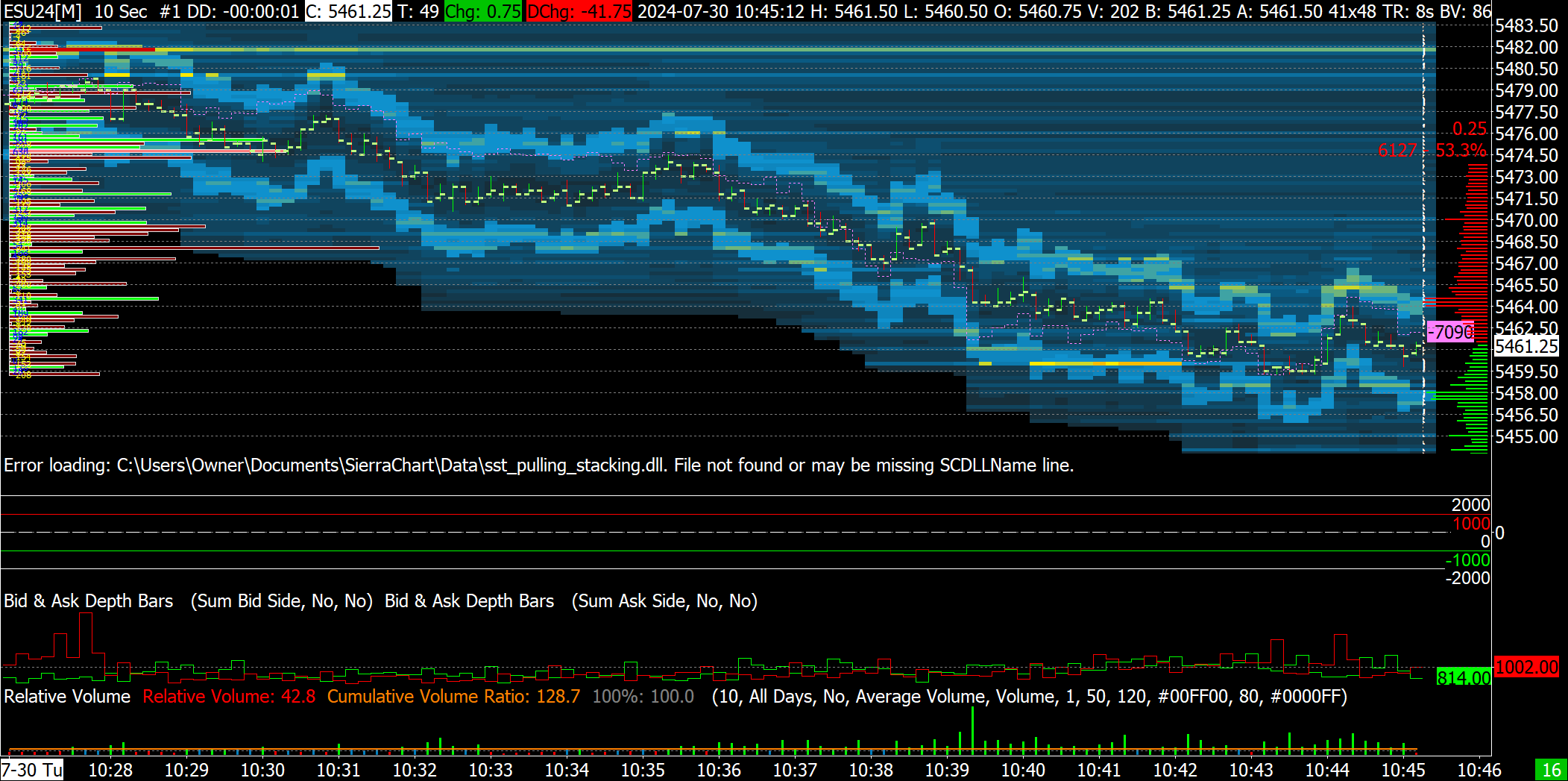 There is nothing wrong with this. It just shows that there are large Market Depth volumes that track the charts. This is normal, as people are putting their Targets and Stops above/below the current price. If there is something specific about this that you are asking about, then we need to know what exactly you are asking about. For the most reliable, advanced, and zero cost futures order routing, use the Teton service: Sierra Chart Teton Futures Order Routing |