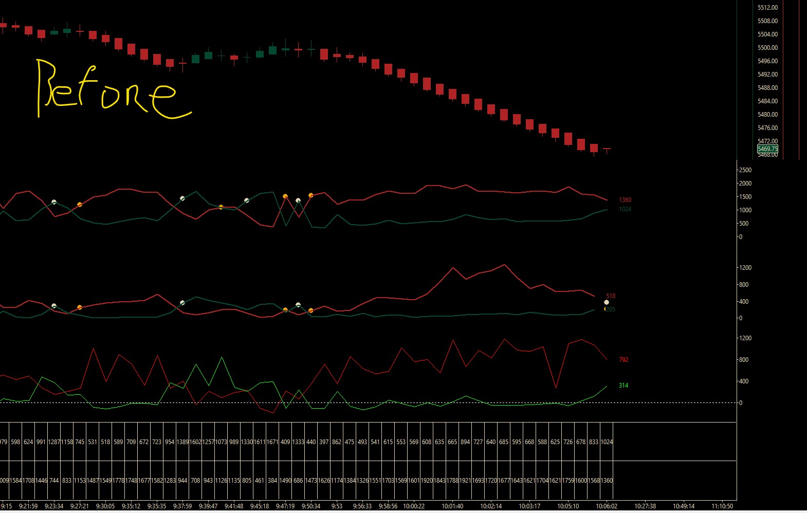 I have a study to track DOM Stacking/Pulling and a study to track DOM Recent Bid Ask. The challenge I have is preserving the DOM data on screen refresh. I am using sc.IsFullRecalculation to not wipe out the subgraphs on a recalc of the chart. However, if for example, I access the Studies window and hit Apply or OK the subgraphs zero out and start over and the previously displayed subgraphs are gone. I have attached a before and after picture of the same chart. Preserving the previously displayed values must be able to be done since a third party study in Region4 does just that. I noticed the Numbers Bars Calculated Values v2 also resets the values. Any ideas anyone? Thanks! Mike