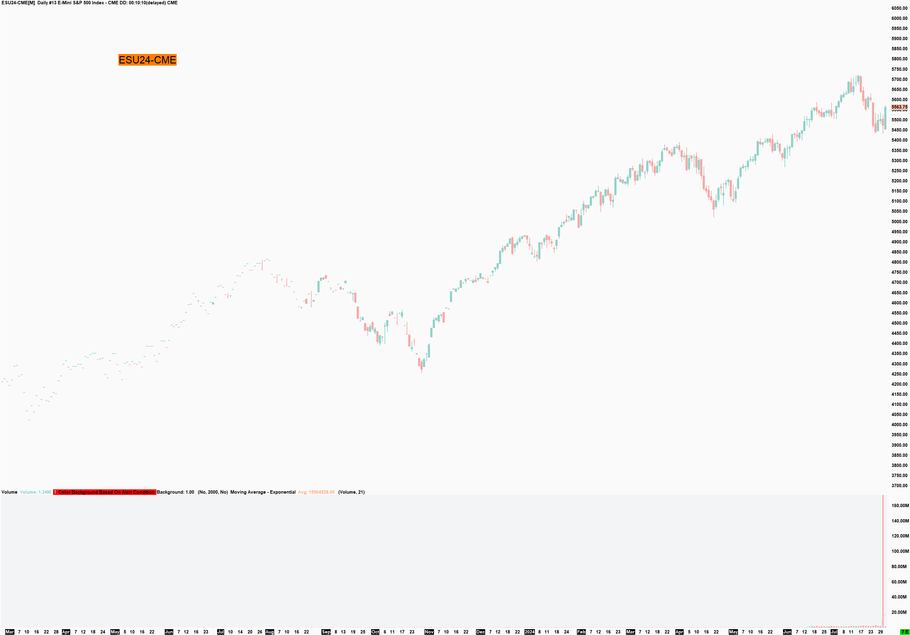 I have the same issue for yesterdays volume, even though I only have one Sierra install. However, the same issue seems to be with ES, YM, NQ and RTY futures (haven't tried any other ones). I checked both continuous futures contracts chart and the latest ones (e.g. ESU24) - they all look like the screenshot attached below. The "Delete all data and download" nor "Reload and Recalculate" made no difference. Thank you in advance for advice Screenshot: https://www.sierrachart.com/image.php?Image=1722449814589.png |