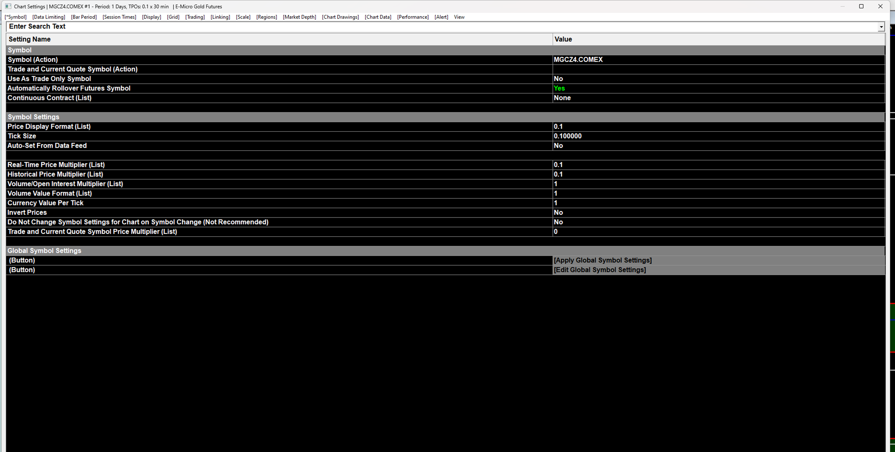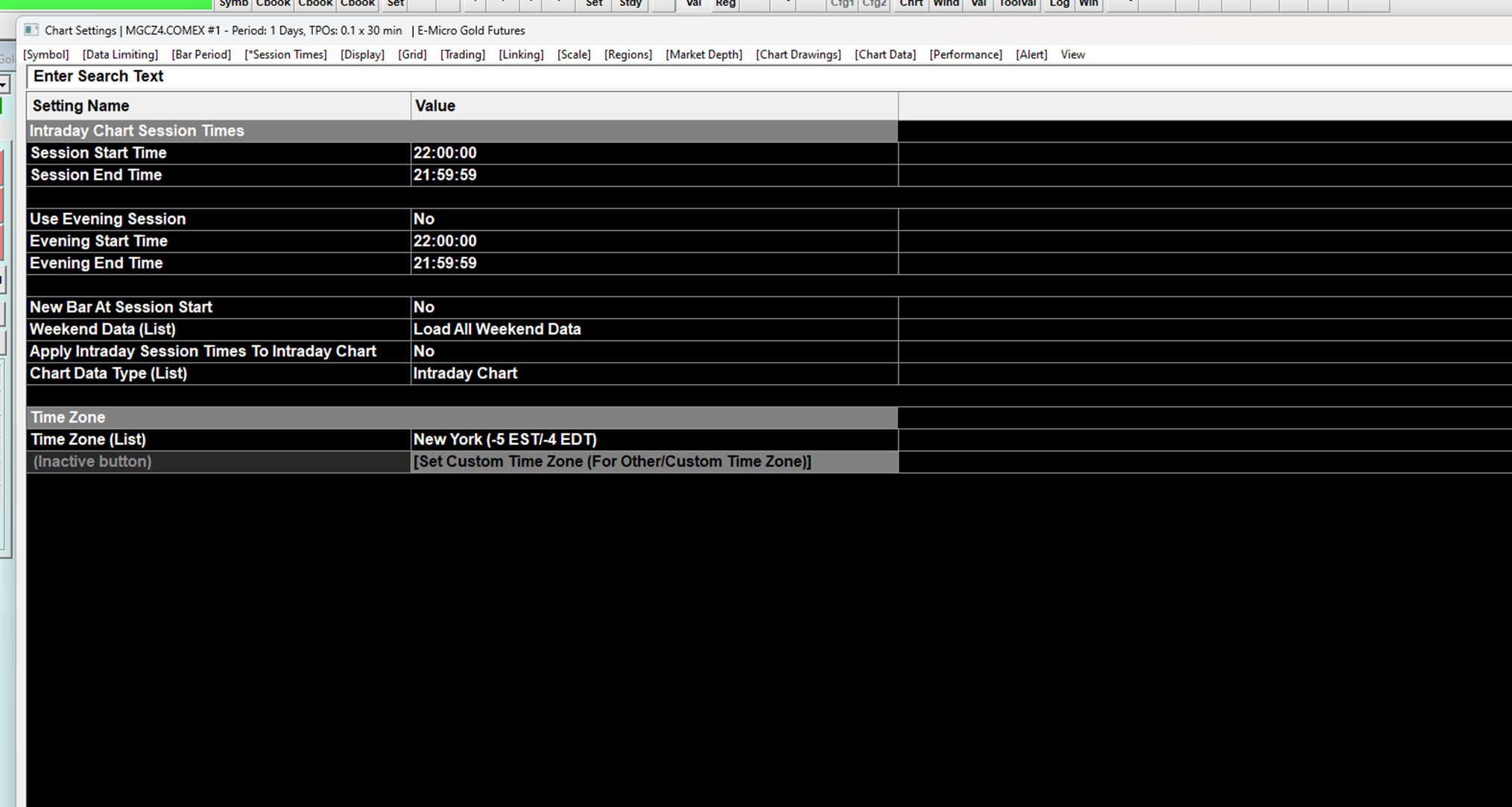 We see you are using Rithmic data: Rithmic Trading Platform Service: Rithmic Support Policy Install a separate installation of Sierra Chart and use the Sierra Chart Historical Data Service: Sierra Chart Historical Data Service Also make sure weekend data is not excluded from the chart: Chart Session Times: Load Weekend Data Setting (Chart >> Chart Settings >> Session Times) And we definitely do not recommend using the TPO Profile Chart study on a micro contract like gold. Instead use it on the full-size contract GC. Also refer to: Time Price Opportunity (TPO) Profile Charts: TPO Chart Time Scale Sierra Chart Support - Engineering Level Your definitive source for support. Other responses are from users. Try to keep your questions brief and to the point. Be aware of support policy: https://www.sierrachart.com/index.php?l=PostingInformation.php#GeneralInformation For the most reliable, advanced, and zero cost futures order routing, use the Teton service: Sierra Chart Teton Futures Order Routing Date Time Of Last Edit: 2024-08-01 19:47:56