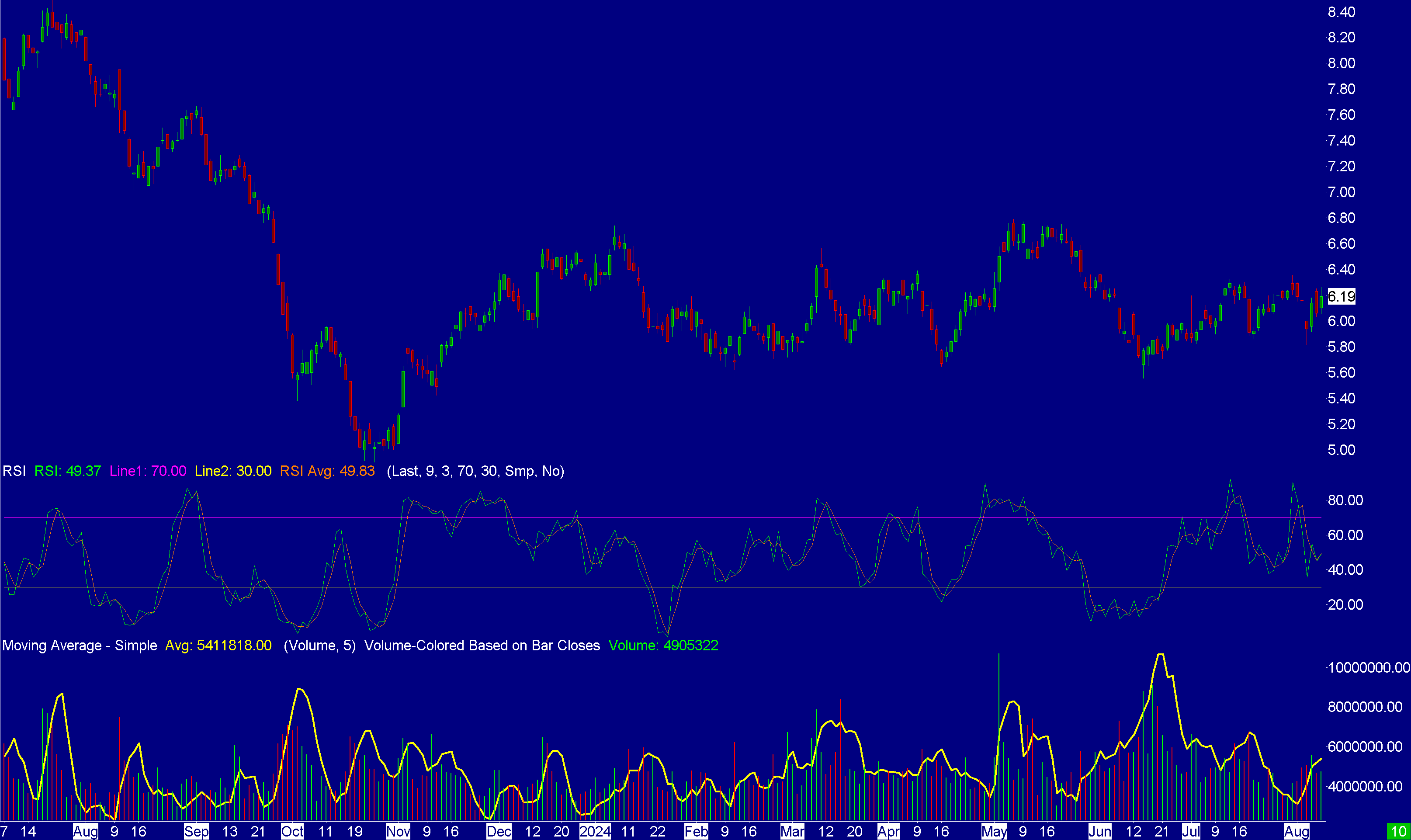 Here is the chart: https://www.sierrachart.com/image.php?Image=1723246766765.png Here is the log: 2024-08-09 19:36:34.844 | Software version: 2609 64-bit 2024-08-09 19:36:34.844 | Primary Thread ID: 36604 2024-08-09 19:36:34.844 | Usage end date: 2024-12-23 2024-08-09 19:36:34.844 | Enabled for: Sierra Chart Historical Data Service. 2024-08-09 19:36:34.844 | Enabled for: Denali Real-Time Exchange Data Feed. 2024-08-09 19:36:34.844 | Enabled for: Delayed Denali Exchange Data Feed. 2024-08-09 19:36:34.844 | Enabled for exchange2: US Equities Consolidated Tape 2024-08-09 19:36:34.844 | Allow Support for Sierra Chart Data Feeds is enabled. 2024-08-09 19:36:34.844 | Current selected Data/Trading service: SC Data - All Services 2024-08-09 19:36:34.844 | Custom symbol settings values: enabled 2024-08-09 19:36:34.844 | Chart Update Interval: 400 2024-08-09 19:36:34.844 | Intraday Data Storage Time Unit: 0 2024-08-09 19:36:34.844 | Time Zone: -04:00:00 (EST-05EDT+01,M3.2.0/02:00,M11.1.0/02:00) 2024-08-09 19:36:34.844 | 2024-08-09 23:36:34 Local computer time in UTC 2024-08-09 19:36:34.844 | 2024-08-09 19:36:34 Local computer time in SC Time Zone 2024-08-09 19:36:34.844 | 2024-08-09 23:25:46 Server time in UTC 2024-08-09 19:36:34.844 | Local computer UTC time and Server UTC time difference: 4 seconds. 2024-08-09 19:36:34.844 | Program path: C: (deleted for privacy) 2024-08-09 19:36:34.844 | Data Files path: C: (deleted for privacy) 2024-08-09 19:36:34.844 | OS Version Number: 10.0 2024-08-09 19:36:34.844 | Locale Setting: C 2024-08-09 19:36:34.846 | DLLs: sst_FreeBundle.dll, sst_FreeBundle_2151.dll, sst_FreeBundle_2151_64.dll, sst_FreeBundle_2273_64.dll, sst_FreeBundle_64.dll, UserContributedStudies.dll, UserContributedStudies_64.dll 2024-08-09 19:36:34.847 | Allowed protected custom studies: SST_FreeBundle 2024-08-09 19:36:34.847 | Crash reporter started: true 2024-08-09 19:36:34.847 | 2024-08-09 19:36:36.376 | Denali Data Feed | Connecting to the server ds30.sierracharts.com. Port 443 2024-08-09 19:36:36.377 | DTC Client socket (4) | Creating socket. 2024-08-09 19:36:36.377 | DTC Client socket (4) | New receive buffer size: 0 2024-08-09 19:36:36.377 | DTC Client socket (4) | Connecting to IP: 38.103.112.179. 2024-08-09 19:36:36.430 | Denali Data Feed | Network connection to server complete. 2024-08-09 19:36:36.430 | Denali Data Feed | Starting socket receive thread. 2024-08-09 19:36:36.430 | Denali Data Feed | Sending encoding request to server: Binary VLS. Compression: high 2024-08-09 19:36:36.504 | Denali Data Feed | Setting DTC encoding to Binary VLS 2024-08-09 19:36:36.504 | Denali Data Feed | Sending logon request message. 2024-08-09 19:36:36.677 | Denali Data Feed | Received logon response. 2024-08-09 19:36:36.677 | Denali Data Feed | Server Name: RealTimeServer. 2024-08-09 19:36:36.677 | Denali Data Feed | Server protocol version: 8. Client protocol version: 8 2024-08-09 19:36:36.677 | Denali Data Feed | Logon error received from server: Connection limit exceeded. | MaxConnectionsDifferentDevices = 2, NumCurrentConnectionsDifferentDevices = 3 2024-08-09 19:36:36.677 | Denali Data Feed | Failed connections: 45 2024-08-09 19:36:36.677 | Denali Data Feed | Waiting for socket receive thread to end 2024-08-09 19:36:36.678 | DTC Client socket (4) | CloseSocket call. 2024-08-09 19:36:36.678 | Denali Data Feed | Disconnected from the server. 2024-08-09 19:36:36.678 | Denali Data Feed | Data feed disconnected. Will reconnect in 5 seconds. 2024-08-09 19:36:36.678 | DTC Client socket (4) | Shutdown started. Waiting for graceful close. 2024-08-09 19:36:36.725 | DTC Client socket (4) | Socket gracefully closed by remote side. 2024-08-09 19:36:36.725 | DTC Client socket (4) | Closed. 2024-08-09 19:36:38.051 | File >> Disconnect selected. 2024-08-09 19:36:38.052 | DTC Client socket (0) | CloseSocket call. 2024-08-09 19:36:38.052 | Denali Data Feed | Disconnected from the server. 2024-08-09 19:36:38.052 | Delayed Data Feed | Waiting for socket receive thread to end 2024-08-09 19:36:38.053 | DTC Client socket (3) | CloseSocket call. 2024-08-09 19:36:38.053 | DTC Client socket (3) | Max send buffers used during socket life: 3 2024-08-09 19:36:38.053 | DTC Client socket (3) | Max send buffer size during socket life: 628 2024-08-09 19:36:38.053 | DTC Client socket (3) | Shutdown started. Waiting for graceful close. 2024-08-09 19:36:38.053 | Delayed Data Feed | Disconnected from the server. 2024-08-09 19:36:38.053 | Delayed Data Feed | Waiting for socket receive thread to end 2024-08-09 19:36:38.054 | DTC Client socket (1) | CloseSocket call. 2024-08-09 19:36:38.054 | Delayed Data Feed | Disconnected from the server. 2024-08-09 19:36:38.054 | Delayed Data Feed | Waiting for socket receive thread to end 2024-08-09 19:36:38.055 | DTC Client socket (1) | Shutdown started. Waiting for graceful close. 2024-08-09 19:36:38.055 | DTC Client socket (2) | CloseSocket call. 2024-08-09 19:36:38.055 | Delayed Data Feed | Disconnected from the server. 2024-08-09 19:36:38.055 | SC Data - All Services | Disconnected. 2024-08-09 19:36:38.055 | DTC Client socket (2) | Shutdown started. Waiting for graceful close. 2024-08-09 19:36:38.114 | DTC Client socket (3) | Socket gracefully closed by remote side. 2024-08-09 19:36:38.114 | DTC Client socket (3) | Closed. 2024-08-09 19:36:38.115 | DTC Client socket (2) | Socket gracefully closed by remote side. 2024-08-09 19:36:38.115 | DTC Client socket (2) | Closed. 2024-08-09 19:36:38.215 | DTC Client socket (1) | Socket gracefully closed by remote side. 2024-08-09 19:36:38.215 | DTC Client socket (1) | Closed. 2024-08-09 19:36:44.623 | 2024-08-09 19:36:44.624 | SC Data - All Services | Connected to server complete. 2024-08-09 19:36:44.629 | No download requests in the queue to start downloads for. | Number times message added: 3 2024-08-09 19:36:44.651 | Mapping AQN to AQN. Service code: us_equities_utp_cta_exchange.data 2024-08-09 19:36:44.651 | Using symbol data fast lookup vector 20