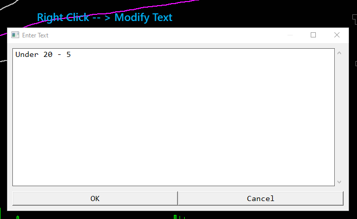 TradingView has now made their objects directly manipulatable (if that's a term). Every object has a nifty little "Add Text" water market that can be clicked to add text. Objects like fibs and forks can even have text entered at each level seen on screen. As you hover your mouse over a level or object, you get the "Add Text" watermark faded onto the screen and if you click, you can just type or edit. That's how it should be done in SierraChart also. Or, as mentioned, at least have a hot key or a double-click and a text edit box in the dialog. Best solution I have is to use a keyboard maestro macro to hit the right-click menu and select Modify Text for me. Good luck everybody. Sierra Chart is still absolutely awesome! Date Time Of Last Edit: 2024-08-13 09:07:20