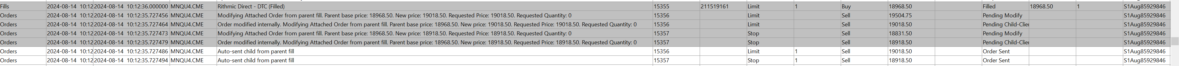 stop and profit take limit moved after fill