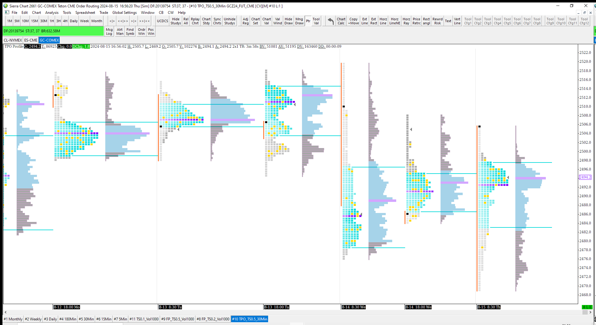 There is a right-mouse option for "Chart Values On/Off" that toggles the state of the display of the Chart Values for the TPO chart. You need to right-click on the chart and select this option to toggle it to "On" so you can see the values. Refer to the information at the bottom of this section: Time Price Opportunity (TPO) Profile Charts: Show Chart Values On Profile For the most reliable, advanced, and zero cost futures order routing, use the Teton service: Sierra Chart Teton Futures Order Routing |