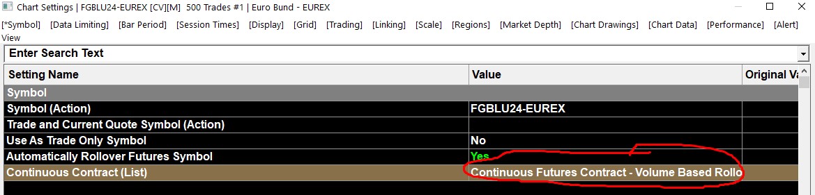 Does not make sense. There must be some reason for this that we are not aware of. Possibly it is related to back adjustments to the continuous futures contracts. Disable the Continuous Futures Contract option on the chart.: Chart Settings: Continuous Contract (Chart >> Chart Settings >> Symbol >> Symbol menu) Sierra Chart Support - Engineering Level Your definitive source for support. Other responses are from users. Try to keep your questions brief and to the point. Be aware of support policy: https://www.sierrachart.com/index.php?l=PostingInformation.php#GeneralInformation For the most reliable, advanced, and zero cost futures order routing, use the Teton service: Sierra Chart Teton Futures Order Routing |