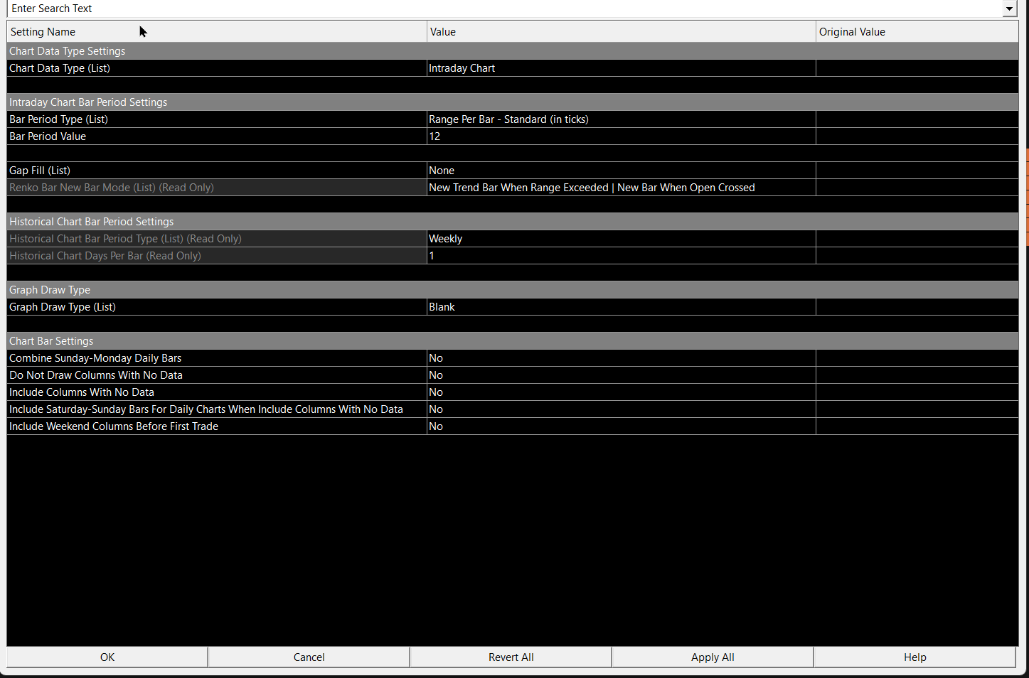Hello Sierra Chart Support, I have already searched a lot on your website but have not found a solution to my problem. I want to display a 12 range chart but unfortunately it always shows me 1 tick more so I get a 13 range chart. It would be very nice if you could help me with my problem. I will send you screenshots of my settings. After I have made these settings I have already executed Delete and dowlnoad all Data. Thank you for Help |