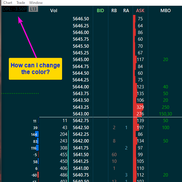 I have looked all around graphic color settings and cannot find it. How can I change the color of the DPL displayed in the top right corner of my DOM. It is currently black and making it very difficult to see. I have attached a screenshot below; |