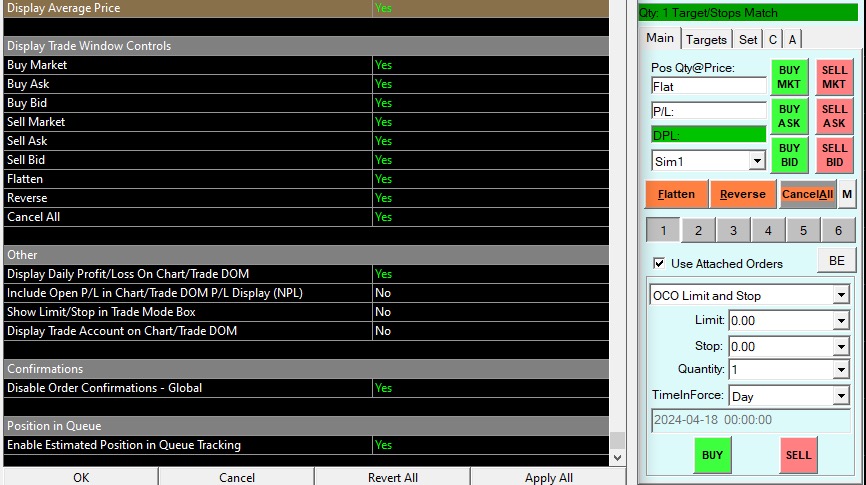 Refer to the following setting: Global Trade Settings Windows: Display Daily Profit/Loss On Chart/Trade DOM (Global Settings >> Chart Trade Settings >> General >> Other) For the most reliable, advanced, and zero cost futures order routing, use the Teton service: Sierra Chart Teton Futures Order Routing |