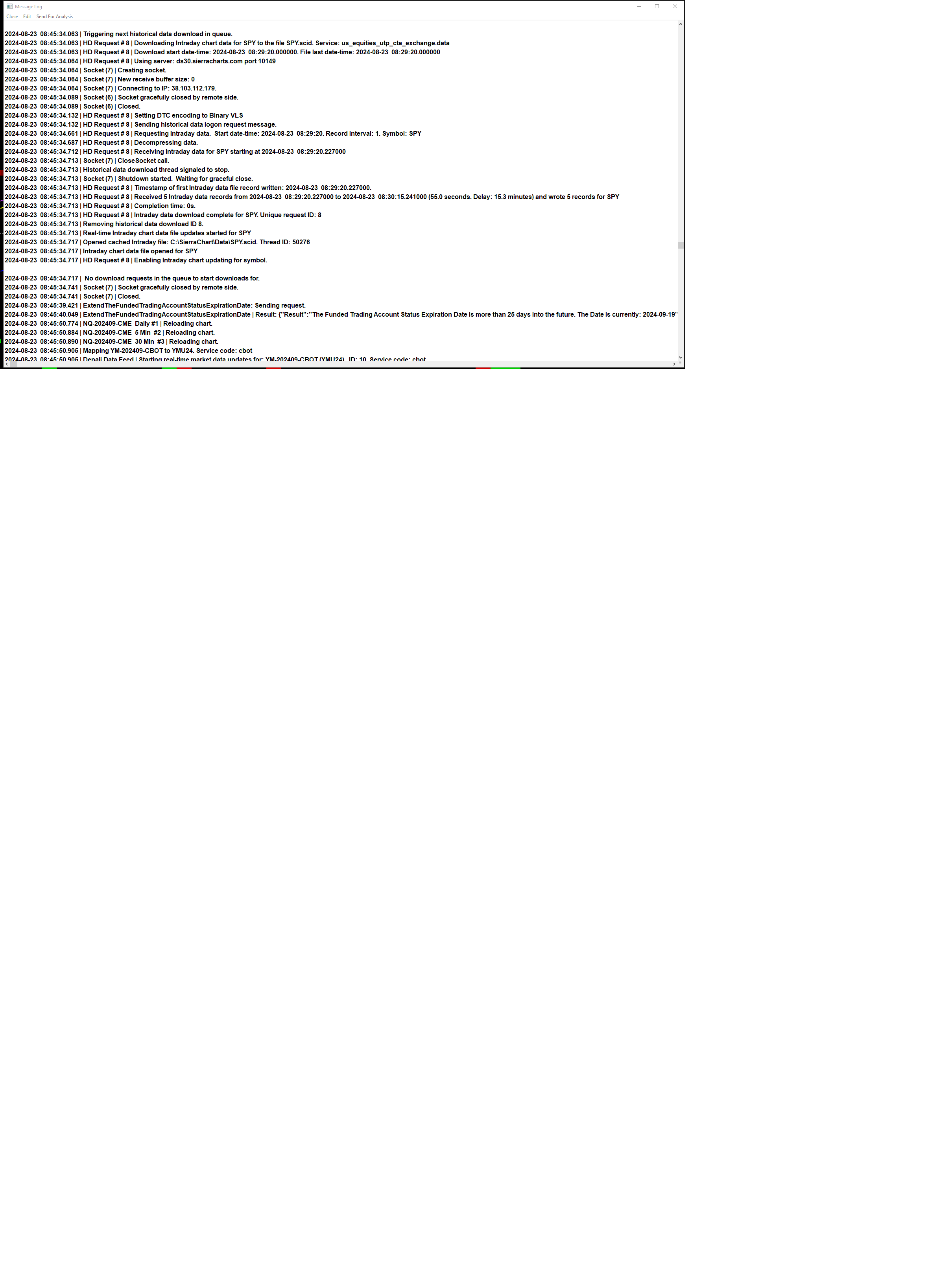 There is nothing in that log that shows any issues with Drawings. If drawings are not showing immediately after you draw them, then this would mean that you have one of the options to "Hide Chart Drawings" enabled. Refer to the following and the item below it: Chart Menu: Hide Chart Drawings (Chart menu) For the most reliable, advanced, and zero cost futures order routing, use the Teton service: Sierra Chart Teton Futures Order Routing |