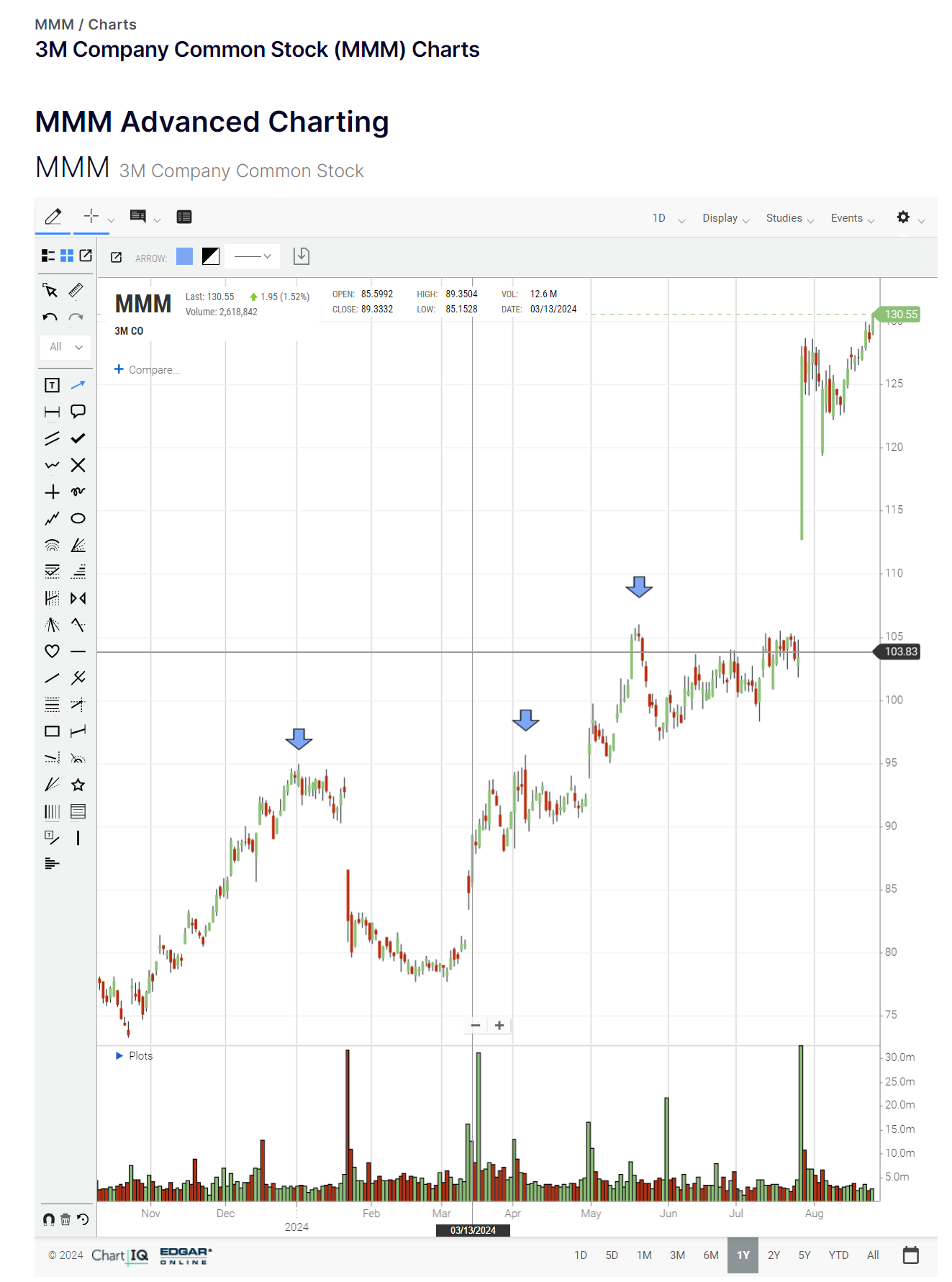 Hi, I can't make the stock chart of 3M company (ticker MMM) to show properly on Sierra. I am looking at another DOW30 stocks and all of them (as much as I can say) appear correctly in Sierra, except for MMM The historical chart at least January 2024 to July 2024 doesn't seem correctly displayed. I have marked three dates on the chart to clearly demonstrate how differently this stock appears, but other dates prior to 2024 also aren't displaying price correctly. This is a Sierrachart screenshot: https://www.sierrachart.com/image.php?Image=1724537919991.png For reference, I have also attached a screenshot from nasdaq.com of the same stock from here: https://www.nasdaq.com/market-activity/stocks/mmm/advanced-charting I marked the same dates on it, screenshot here: https://www.sierrachart.com/Download.php?Folder=SupportBoard&download=105164 I also checked on NYSE chart and confirmed my Sierra is not correct: https://www.nyse.com/quote/XNYS:MMM Looking at similar advice on other threads in this support board I have tried the following: 1. Looking both into chart of ticker MMM and MMM-NQTV and they both show the same data (incorrect) 2. Performing Edit > Delete all data and download 3. Checking this setting: Data/Trade Service Settings: Process Known Odd Lot Equity Trades for DTC Services (Global Settings >> Data/Trade Service Settings >> Common Settings >> Common Other Settings) Is set to "No" 4. Chart Time Zone is set to: "New York" 5. Session times are set to: Session Start Time (Read Only): 9:30:00 Session End Time (Read Only): 15:59:59 If it helps, my chartbook with MMM and MMM-NQTV: https://www.sierrachart.com/Download.php?Folder=SupportBoard&download=105165 Can I have an advice how to fix this chart please? I can't find anything else on this support board to try, so I wonder if the data of this stock might be incorrect on the data server..? |