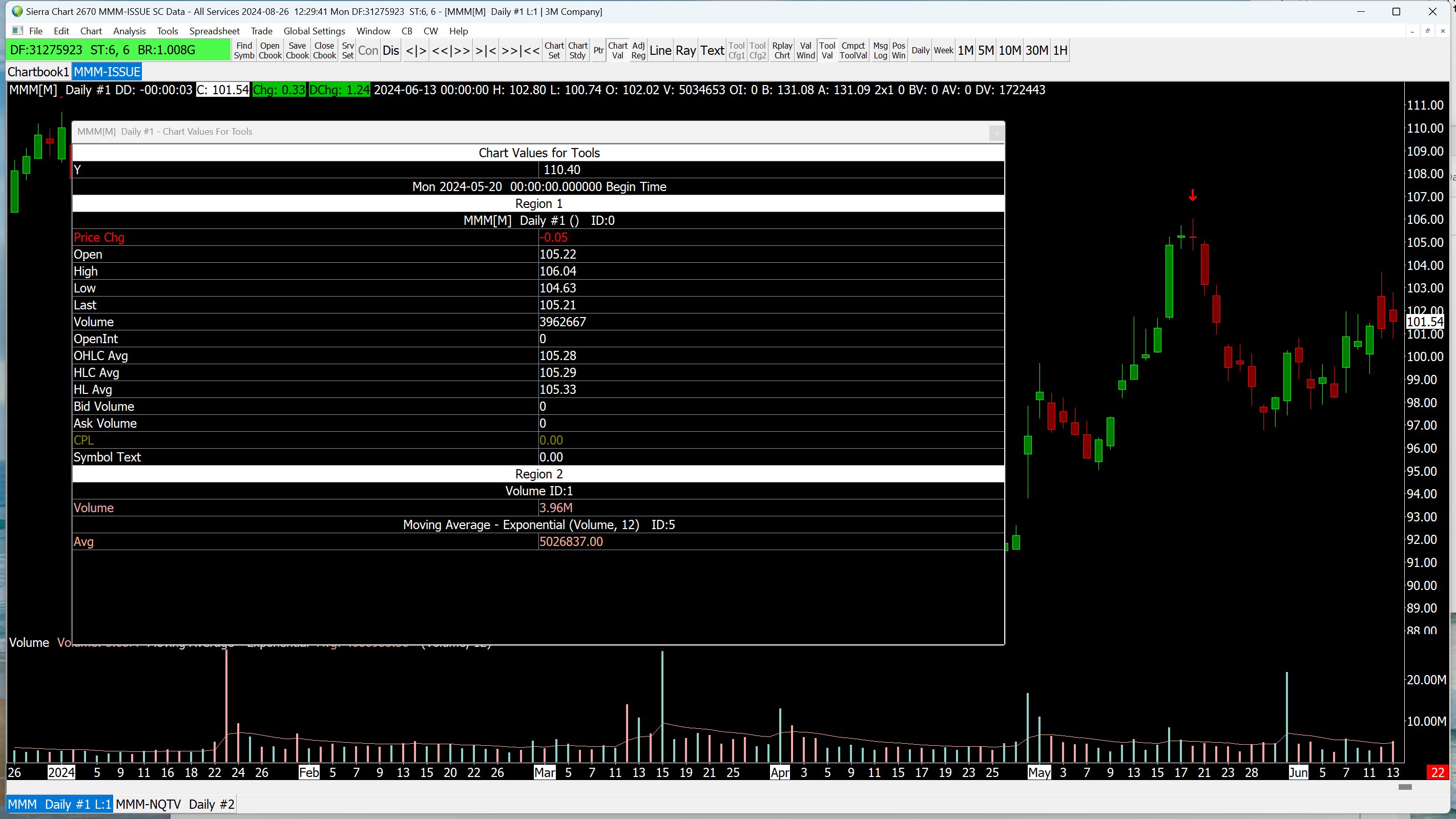 The data for MMM should now be correct. Re-download all the data in the chart by going to the chart and selecting "Edit >> Delete All Data and Download" from the main Sierra Chart menu. You just need to do this once per symbol and not for each chart. This command is on the main Sierra Chart menu at the top. Only use it from that location. Sierra Chart Support - Engineering Level Your definitive source for support. Other responses are from users. Try to keep your questions brief and to the point. Be aware of support policy: https://www.sierrachart.com/index.php?l=PostingInformation.php#GeneralInformation For the most reliable, advanced, and zero cost futures order routing, use the Teton service: Sierra Chart Teton Futures Order Routing |