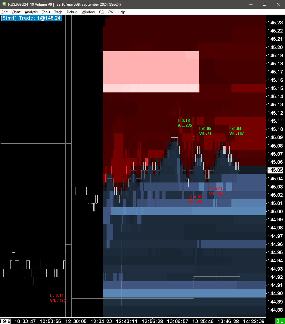 What you show in Image 2 is normal. That is just due to how we draw the data. What is happening is if the values have not changed then the drawing is drawn forward, but if the initial value is off the screen, then you will see the blanks like you are seeing at some levels. But what was odd in your video was that there was data missing over the entire area on the left, not just a few missing blocks. We are pretty sure this is why you are seeing the flashing, as it is trying to update that area, so you see some of the drawings coming in and out, but we are trying to understand the reason why you would have that occur in the first place. Is there something in particular that occurs that causes that entire left side to be blank? Do you happen to notice a particular pattern that causes it? For the most reliable, advanced, and zero cost futures order routing, use the Teton service: Sierra Chart Teton Futures Order Routing Date Time Of Last Edit: 2024-09-06 14:07:44