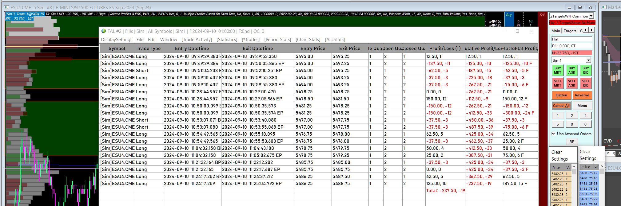 Hello Sierra Chart, Please note that the commissions listed in the Trade Activity Log are calculating incorrect (almost twice the 3.8 per round trip as listed in the Global Settings > Symbol Settings in the Other Settings for "Use Global Round Turn Commission". In addition, the Trade Activity Log show a negative P/L number and the listed NPL in the Trading Window shows a positive number? Also note that the "Use Custom Symbol Setting Values" is checked (also tried unchecked). Also note that "Use Symbol Commission Setting in Trade List and Statistics Calculations is YES (also tried NO). Also note I am siming under Sim1 and using the NQH25_FUT_CME[M] symbol Any additional info to obtain accurate trading stats is greatly appreciated. Thank you. |