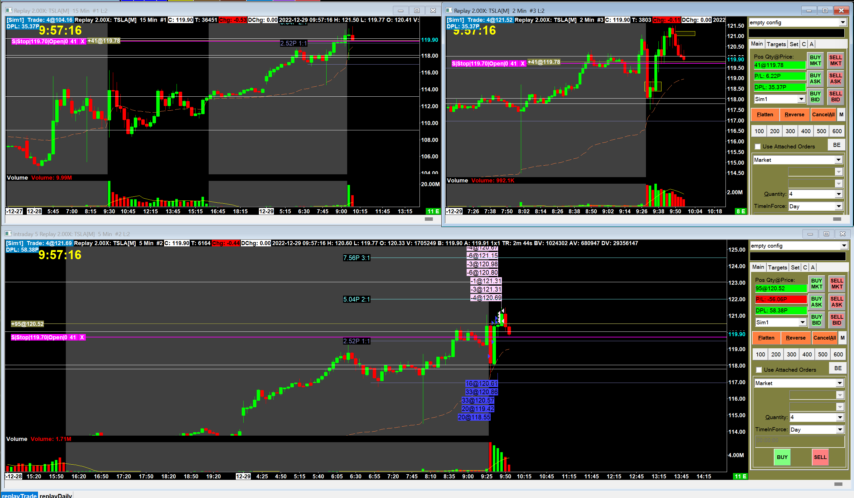 Hi, I recently started having this issue of sim trades not syncing in terms of sim1 account order execution. I provided a screen cap as an example. see in #3 chart, pos is +41@119.78, whilst the chart in #2 is +95@120.52. trade activity log follows the sim trades in #3 (even though #3 doesn't even show the execution triangles). All my trades are made using the trade window from #2 I looked into different documentations and has done the following I attempted to resolve this by: 1. removing any global loss//gain management restrictions 2. linking the charts at link number 2 with the following turned as yes: symbol, session times, days to load, trade window 3. I've done the 'Simplified Steps to Solve Incorrect Daily Profit/Loss' in the documentation https://www.sierrachart.com/index.php?page=doc/DailyProfitLossValue.html. I kinda skimmed through the documentation but not much was said about sim trades I can't find another cause for this. can someone please guide me to any useful reference or solution? thanks |