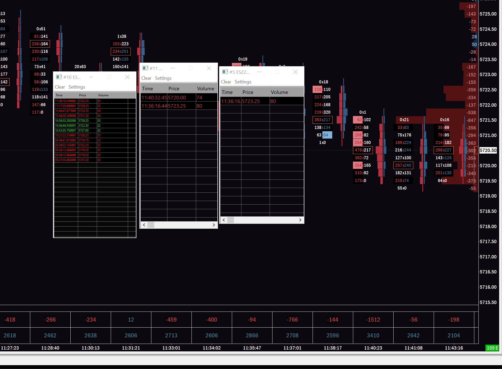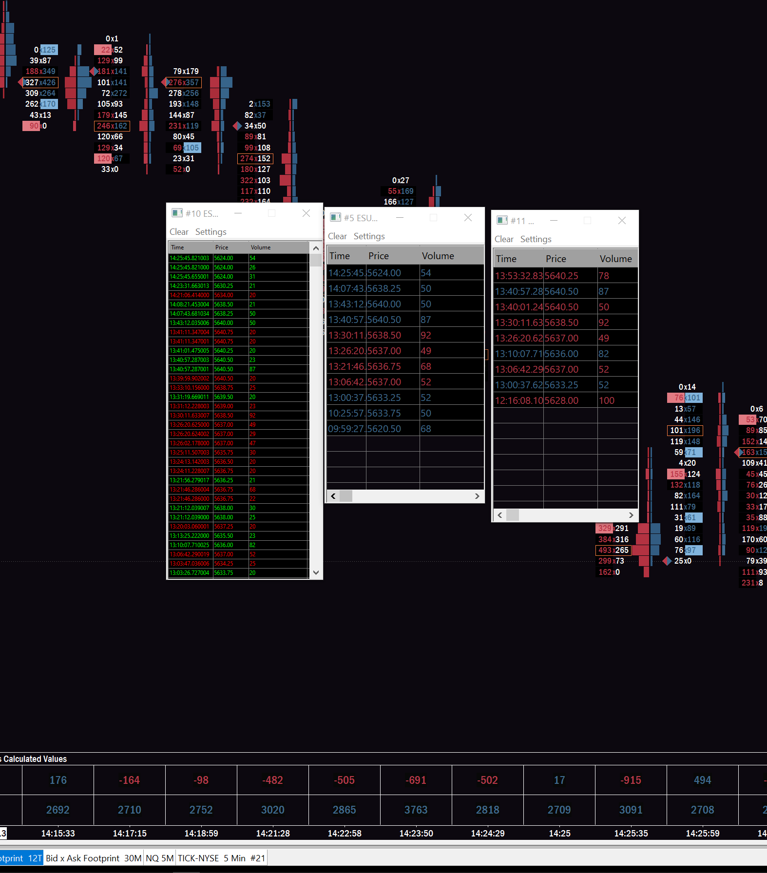In the last image you sent, where are you seeing a print that is above the filtering levels that is not showing in other windows? We need the exact time and volume value. Also, what are the filters set to in all 3 windows? For the most reliable, advanced, and zero cost futures order routing, use the Teton service: Sierra Chart Teton Futures Order Routing |