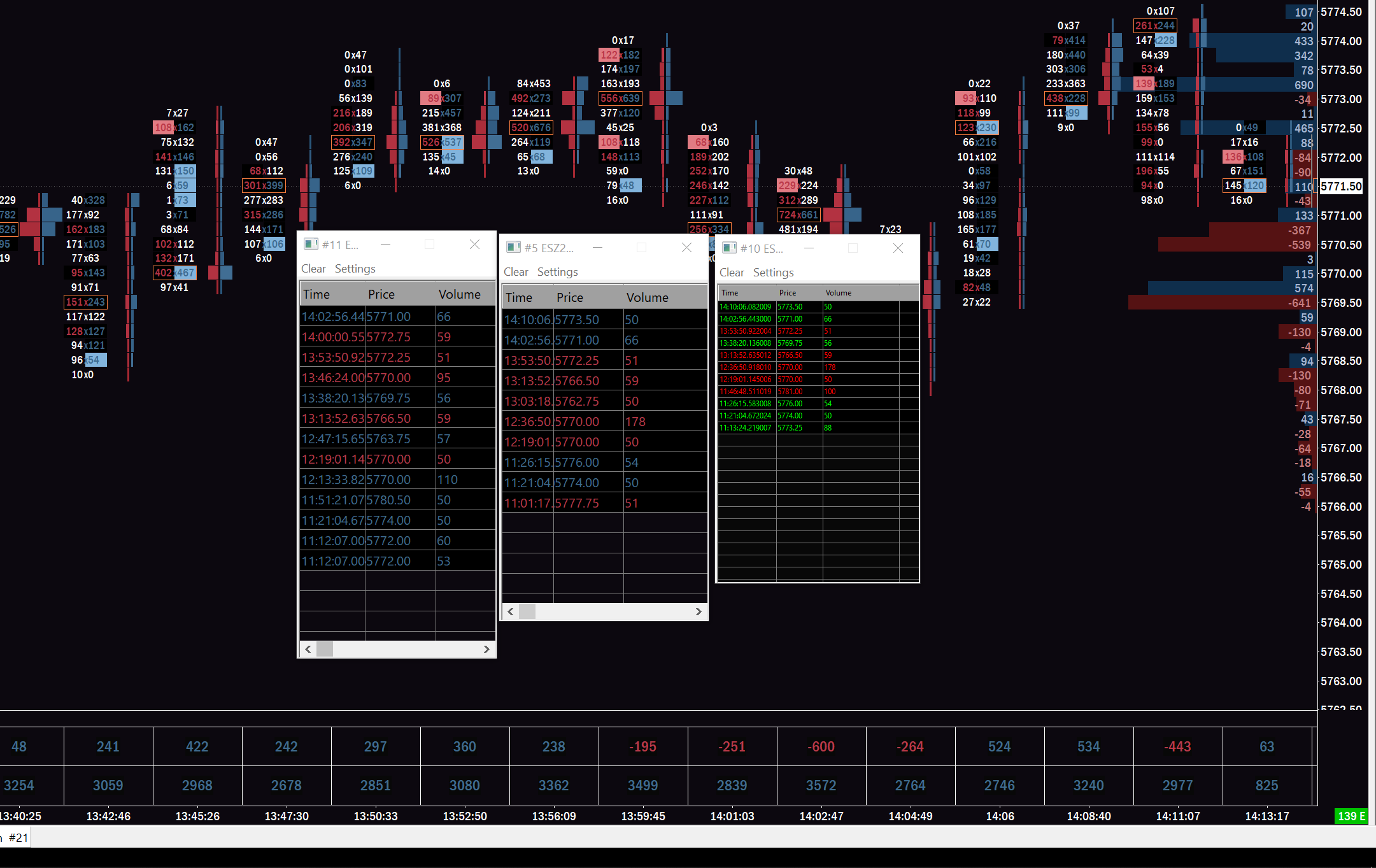 The good news is that we now see the exact same data when it is printed in each of the three windows. So that means that the Time and Sales is definitely picking up the correct data. For example, the posting at 13:06:42.290019 is in all three windows with a volume of 52. Given this, the implication is that the filtering value is not the same for all 3 windows. If they were all set to 50, then you would not be getting the values less than 50 in these windows. In particular, it looks like the Time and Sales filtering are set to the following, from left to right in the image: - Referencing Chart #10: 20 - Referencing Chart #5: 50 - Referencing Chart #11: uncertain Also make sure the option for "Show Bid and Ask Records" is set the same between all three windows. For the most reliable, advanced, and zero cost futures order routing, use the Teton service: Sierra Chart Teton Futures Order Routing |