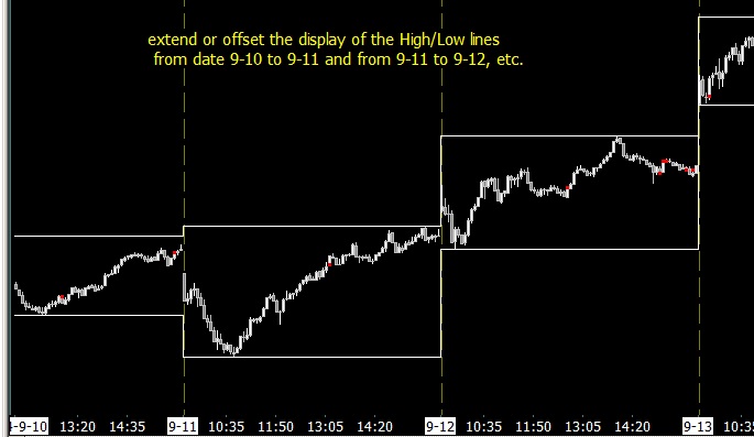 Can Sierra extend or offset the display of High/Low lines from date 9-10 to 9-11 and from 9-11 to 9-12, etc.