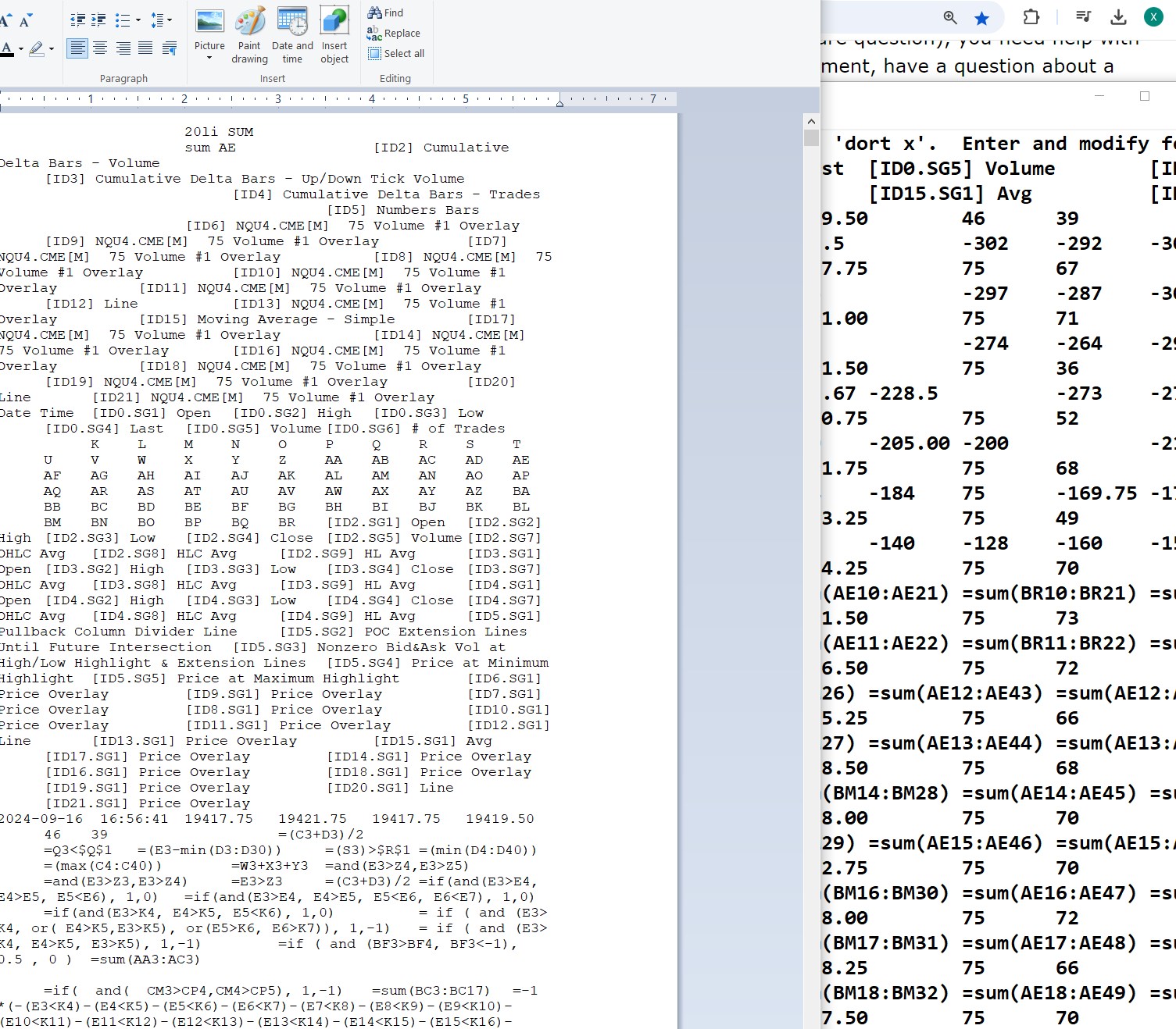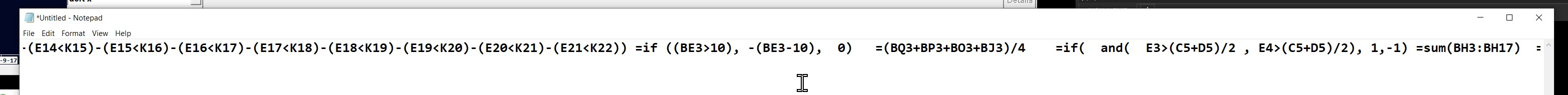 Thank you John for the answer. Reaching through "mouse selct" and "only one cell formula at a time" is what iam trying to evade. The output of "save as text" option for spreadsheet is not readable. (I put the image on first message) How can get a readable output ? To see all row 3 formulas (say 60 of them) together at a glance . (not switching to each "one by one" clicking cells 60 times". Thank you ********* ADDITIONAL NOTE (i (somehow lately :) )understood and applying your solution. and it helps a lot) Date Time Of Last Edit: 2024-09-17 18:12:22