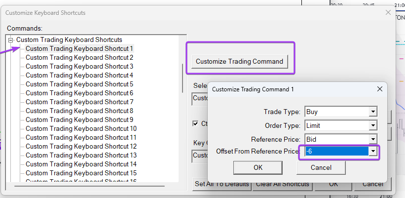We do not have any options beyond the 1, 2, and 3 offsets. If you want something further, you would need to create a custom study to do this. Refer to the following: Advanced Custom Study Interaction With Menus, Control Bar Buttons, Pointer Events https://www.sierrachart.com/index.php?page=doc/SierraChartStudyAndSystemProgrammers.php For the most reliable, advanced, and zero cost futures order routing, use the Teton service: Sierra Chart Teton Futures Order Routing |