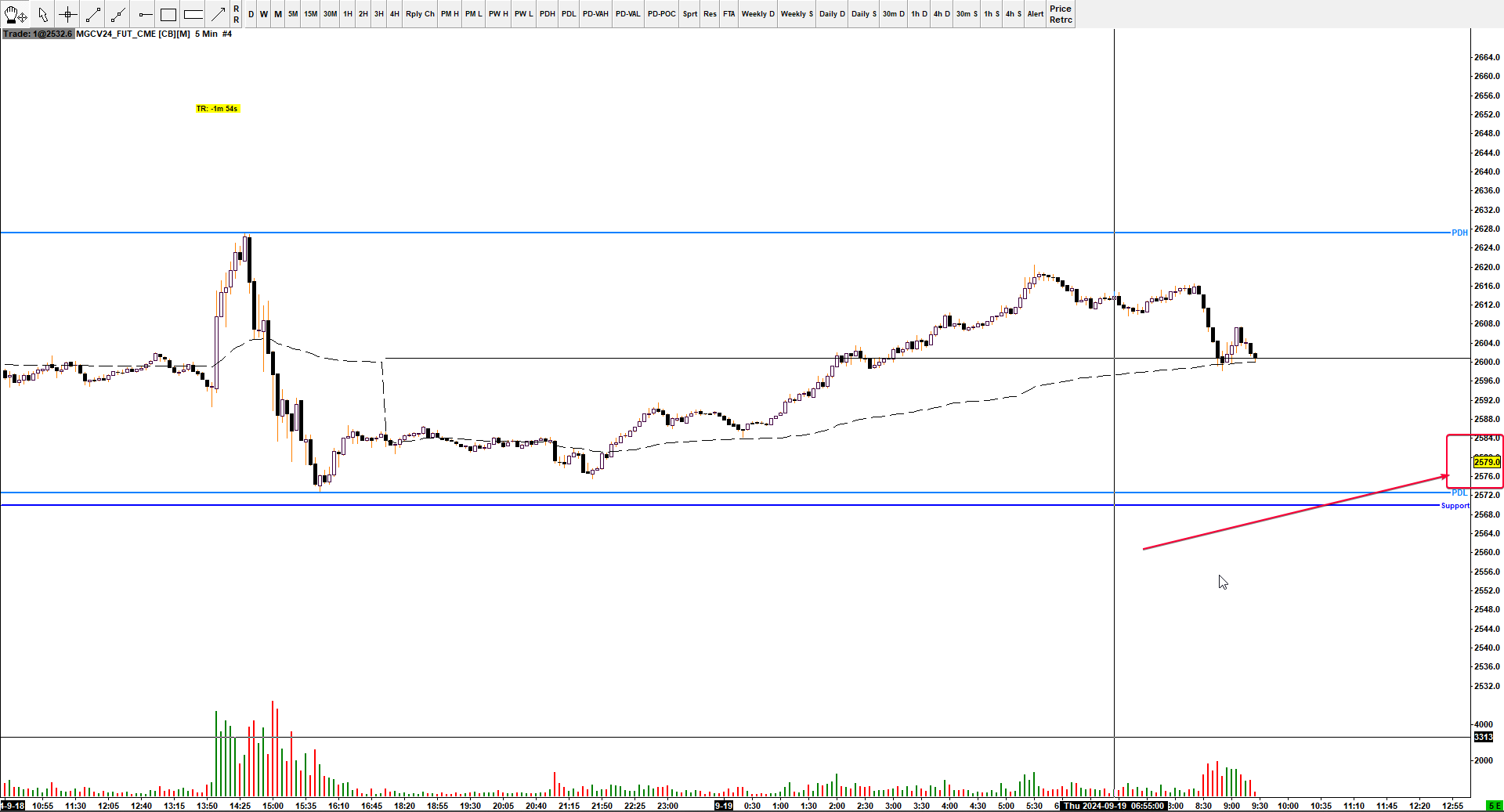 hey i have an issue with GC and MGC charts and it happens only with these tickers the chart is frozen i only see it updated when i change time frame but when i leave it open i cant see the candles just the last price box is moving |
