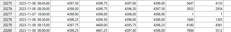 I am downloading 15 minute ES data from 11-8-2024 and there are 2 entries for 8:30 AM. And in between those two entries is a line of data for 11-7-2024 at 18:00. See attached picture. Should this be fixed on your end? Is there a work around on my end? TY