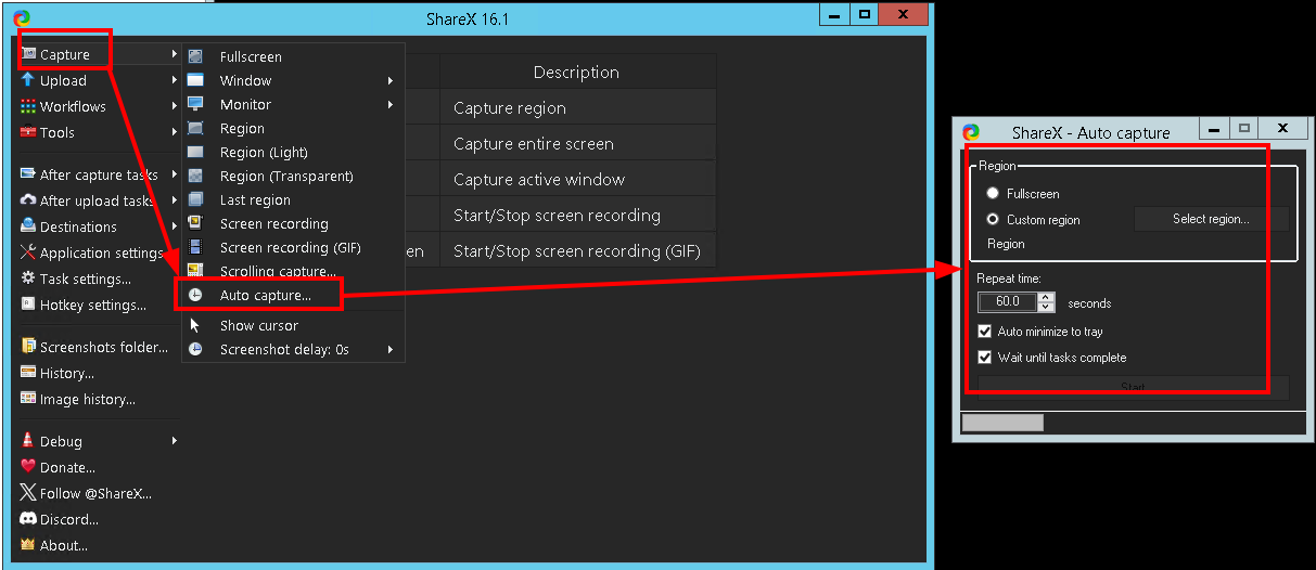 Not sure if this is what you are looking for, but you can simply use an external screen capture application and automate its functions: On Linux, there are many (Ksnip, Flameshot, etc). On Windows, Greenshot or the most powerful is Sharex (getsharex.com) > recommended (see below). All these applications allow you to - assign keyboard hotkeys to certain screenshot functions (no need to use the mouse or click through menus) - automatically save the screenshot to a preset folder (or upload to FTP, etc) using a filename pattern (can be set to anything and autoincrements are allowed), and automatically create the directories based on the date/time structure, etc - all without manual intervention (other than pressing a hotkey on the keyboard). This alone can significantly reduce the time you spend saving images. Sharex also has a 'timer' function that allows you to save screenshots of a preset region or the entire screen at regular intervals, so you can automate the whole process and can select an interval suitable for bar-by-bar or preset interval based backtesting. All these apps have the option to save files to multiple different locations or publish them somewhere + copy the screenshot to the clipboard, so pasting it into other applications (notes) is just takes using CTRL+V There are SC plugins (studies) for similar functions, but they are 3rd party studies and usually have some limitations. One free I know of is SimpleSystemTrading's screenshot study, that automatically can take a shot when you open a position and when it closes - can also be helpful if you execute trades during backtesting. Hope this helps. Regards, tt Date Time Of Last Edit: 2024-09-29 13:38:33