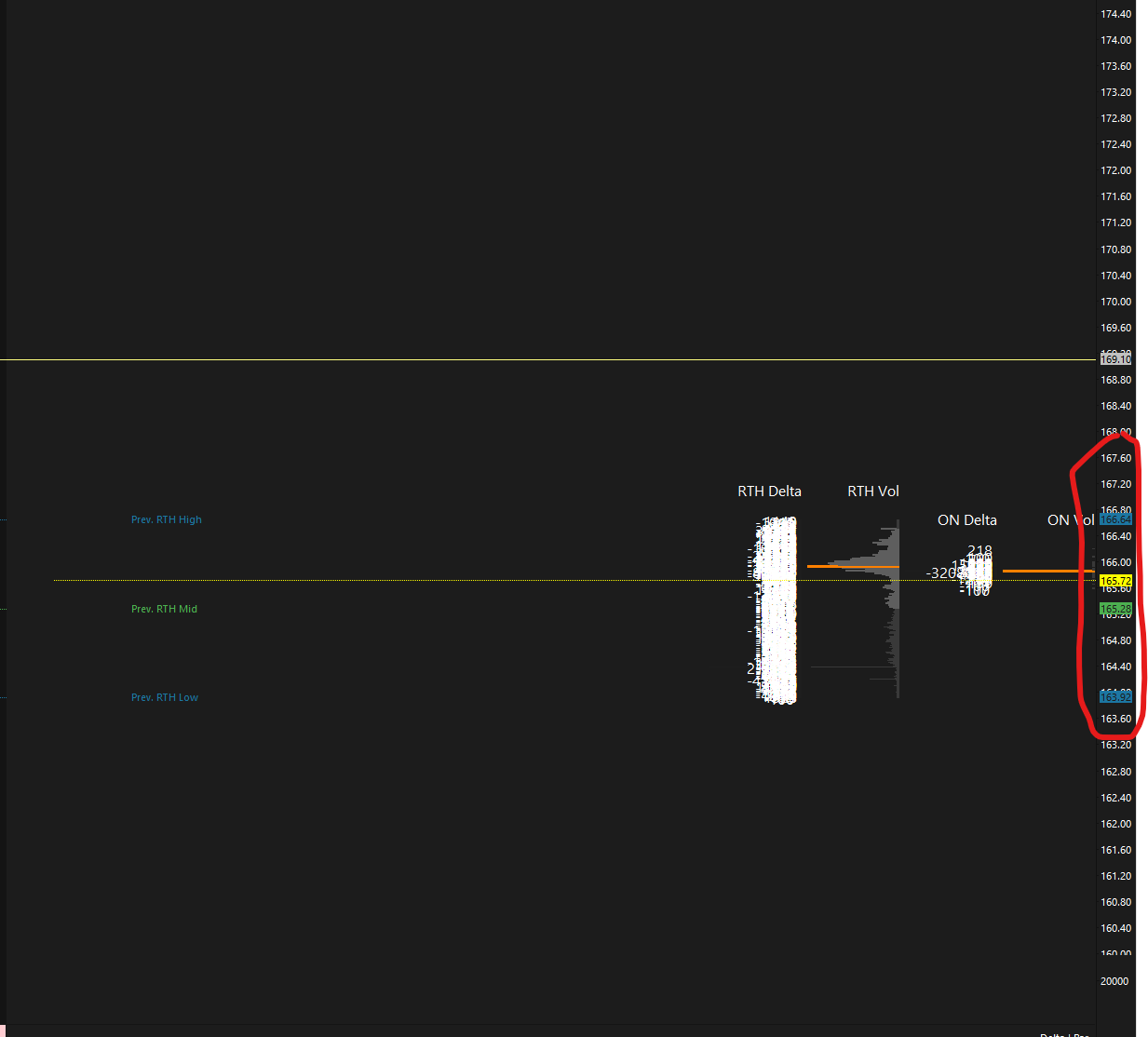 Try holding your mouse pointer over the price ladder (on the right) and then left-click-hold and drag the price ladder up and down to where you want it.