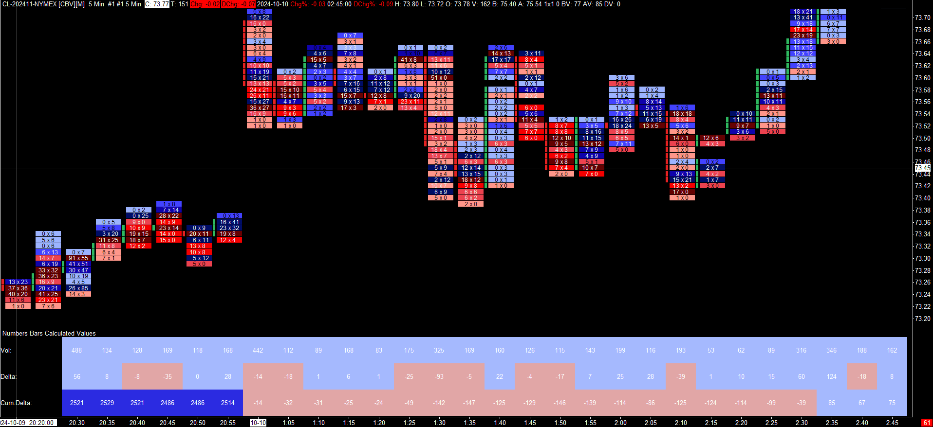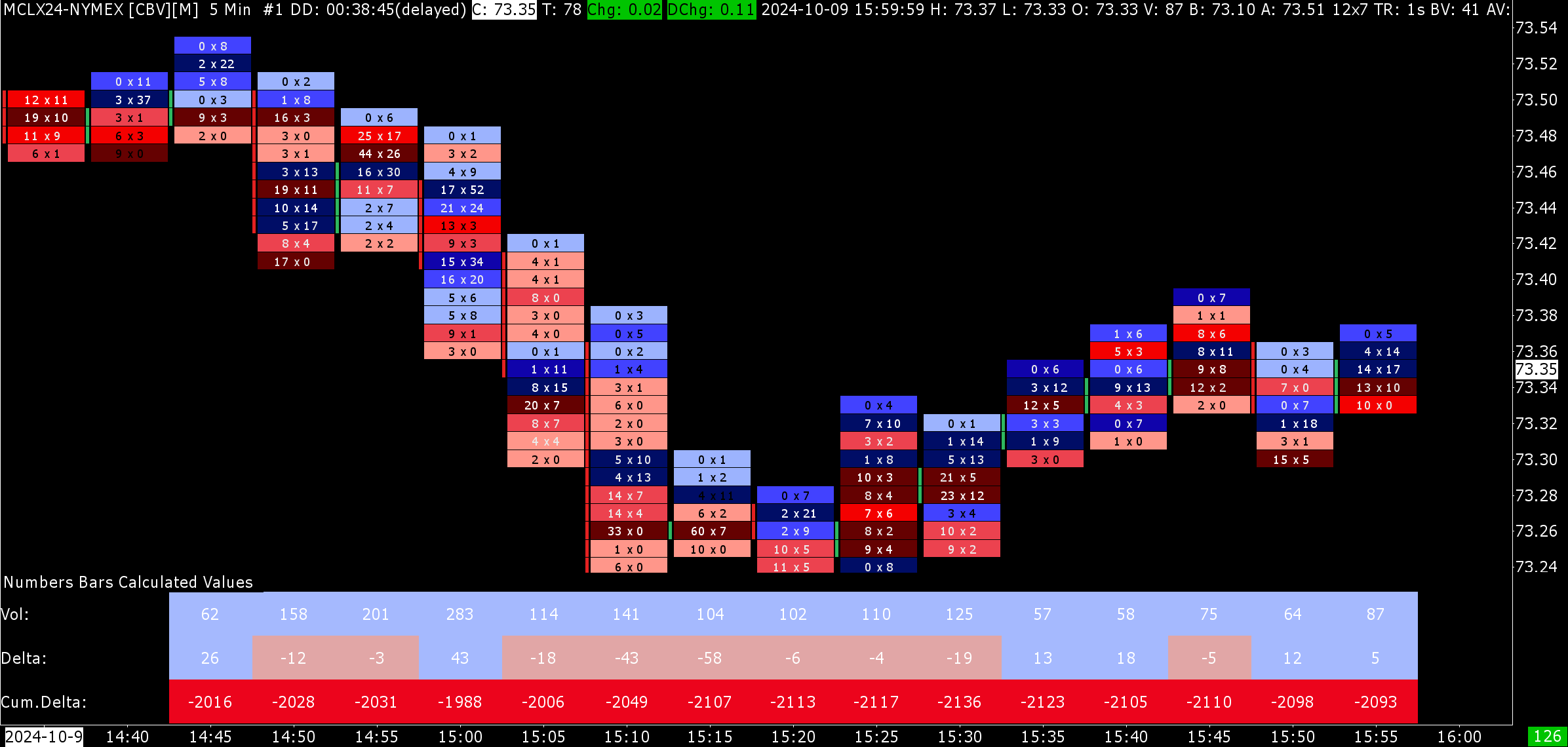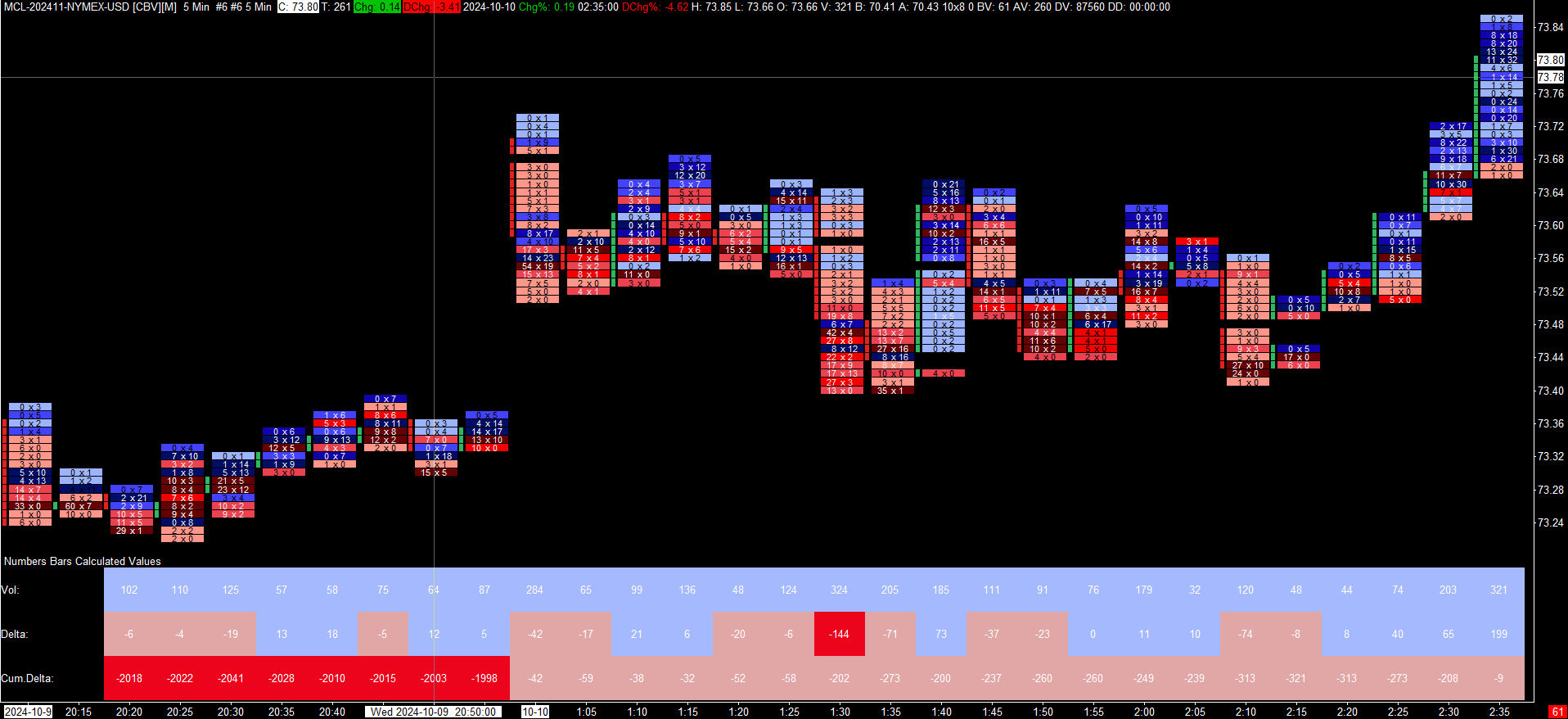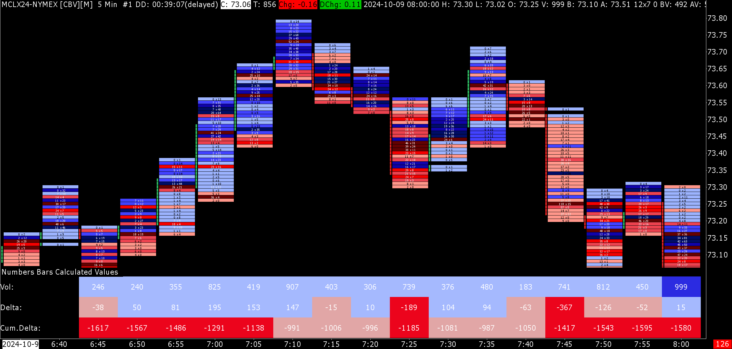 John IM not sure ive done it right. Cant find the 5 min footprint anymore. ive uploaded a 30 min footprint which it looks like the cumulative delta works fine (shading). if I change the bar period to 5 min doesnt work anymore. please can you make the same footprint chart but for 5 minute time frame. tanks