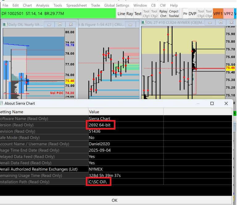 Hi John, In the "SC Oil" that I do use there were 2 instances that I deleted. That did not help. When I shut down and re-started SC, it opens up again in release 2671 In the attached image, I highlighted the path folder and the version #. Somehow the update is not being saved and applied. Regards, |