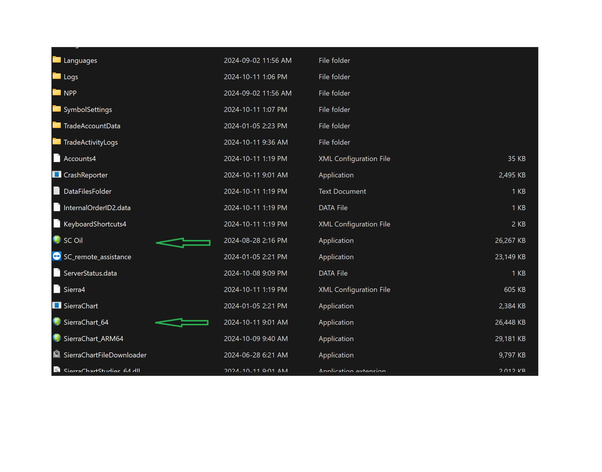 We are a bit stumped by this, as typically this situation occurs when there are multiple installations, but you definitely show that both versions are in the same installation folder. Additionally, this could not be caused by another program, as once the new version is installed, the old executable is gone. So there is no way that it could be restored. When you state you "shut down and re-started SC", are you shutting down the computer, or just Sierra Chart? When you start Sierra Chart is there any message about needing to update to a particular release, or anything about downloading a specific version of the software? For the most reliable, advanced, and zero cost futures order routing, use the Teton service: Sierra Chart Teton Futures Order Routing |