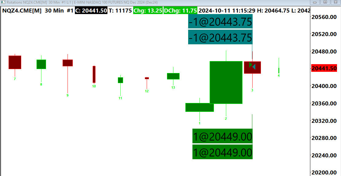 Looking at the Trade Blotter, there is a disconnect between the trade management sent from Sierra to Rithmic. I've attached a screenshot of the trade I mentioned I was monitoring. I paid 20449 for 2 of NQ via OCO. My logic says that if I'm onside 20ticks to move to breakeven. The market traded to 20480 so I was well onside. At this point I physically watched my trail move into profit based on my trade management logic. Yet looking at the trade blotter and the chart of the NQ it's saying I took a loss which is incorrect. Sierra is moving my trailing stop as defined in my system and Rithmic is ignoring it. |