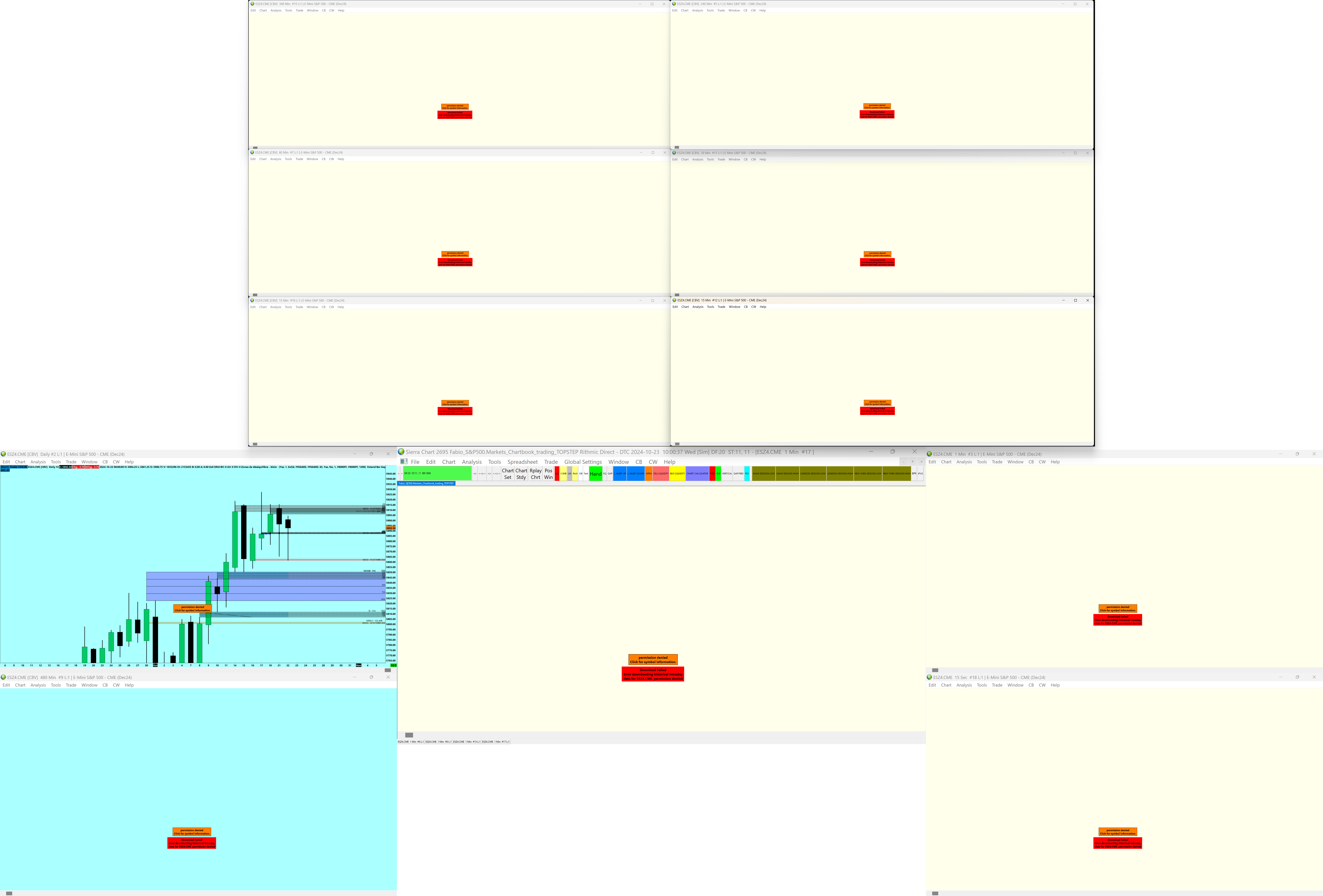 Hi, First time using the support board and my english in not perfect, so sorry in advance. I created a Topstep account and i'm having problems with it on Sierrachart. I activated everything needed, CME Data, i signed all the agreements on Rithmic Pro. I translated the symbol to current services, i chosed simulation trading mode off, all the credentials are correct, i have the conexion to the Data, however, i only can see the data on the daily chart. On the other charts, inferior time frames, i dont have any data. i always receive an error saying "permission denied. click for symbol information" and "download failed. Error downloading historical intraday data for ESZ24-CME. Permission denied". I did all the steps for the conexion with a person that knows a lot about sierrachart and he is also using a APEX account. It works for him, it works for a few other friends, but i can't make it work for me. Can you help me with this please? Best Regards Vilela |