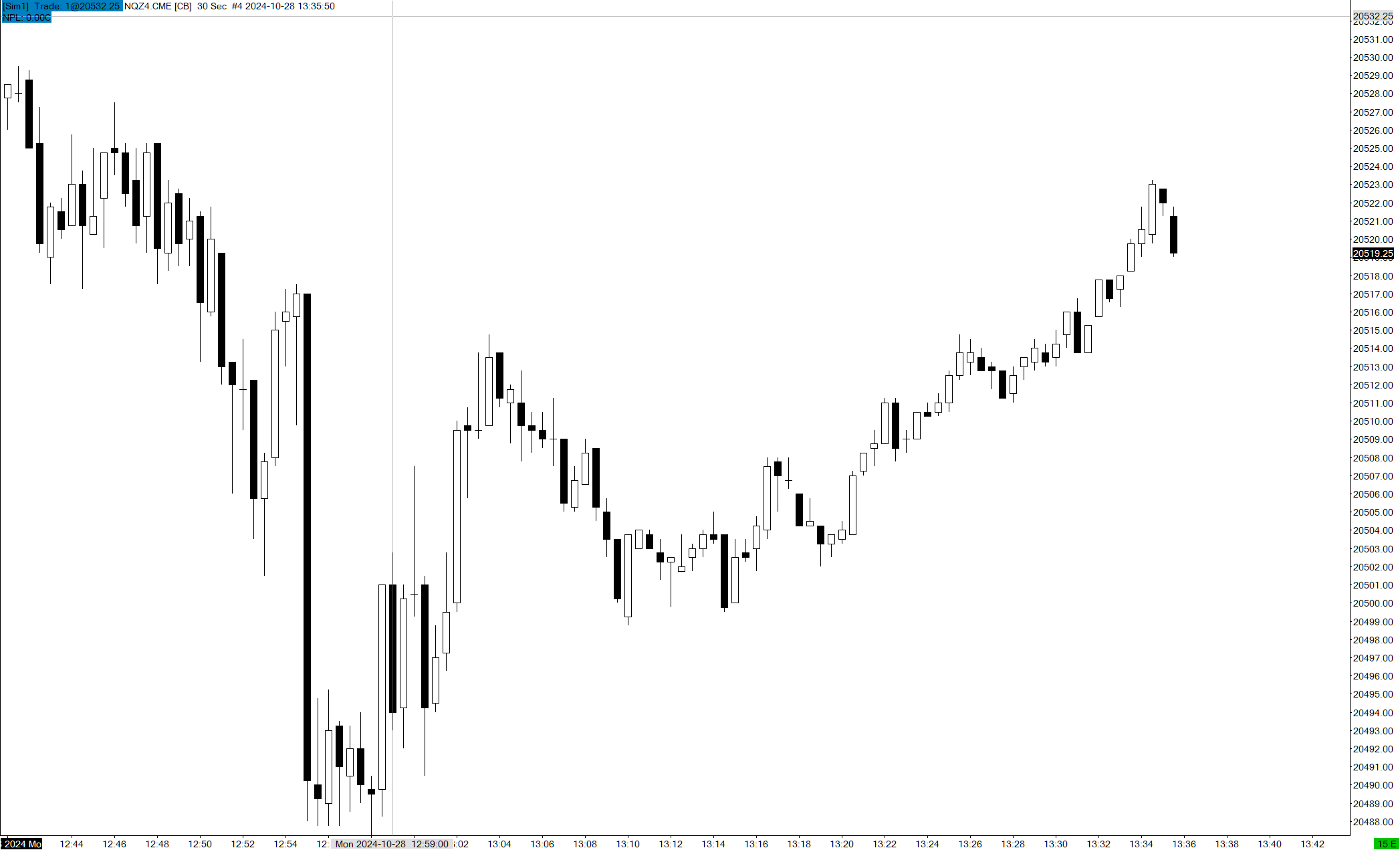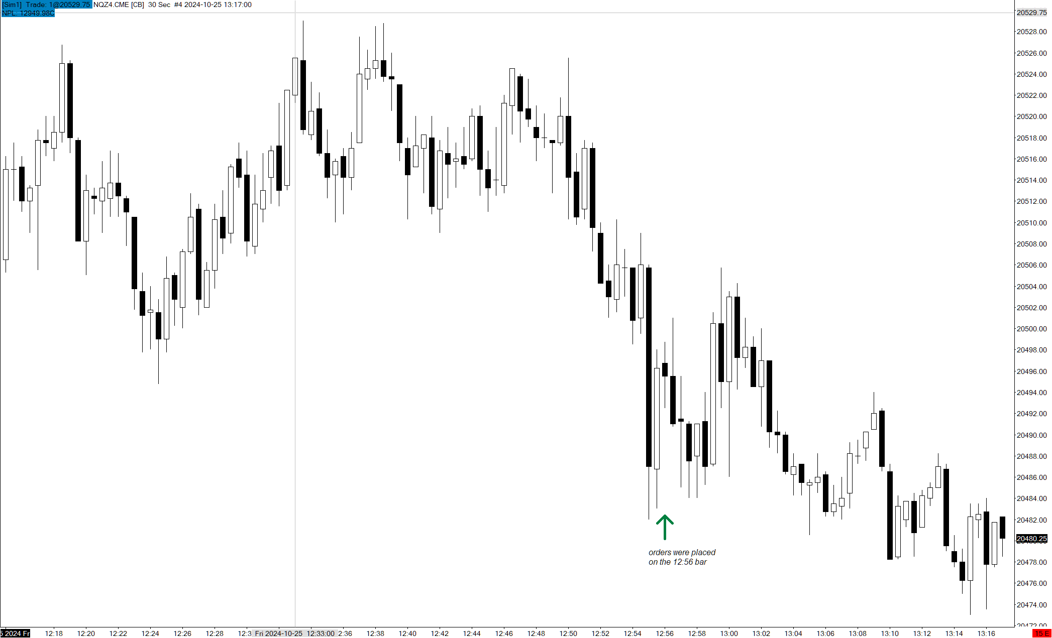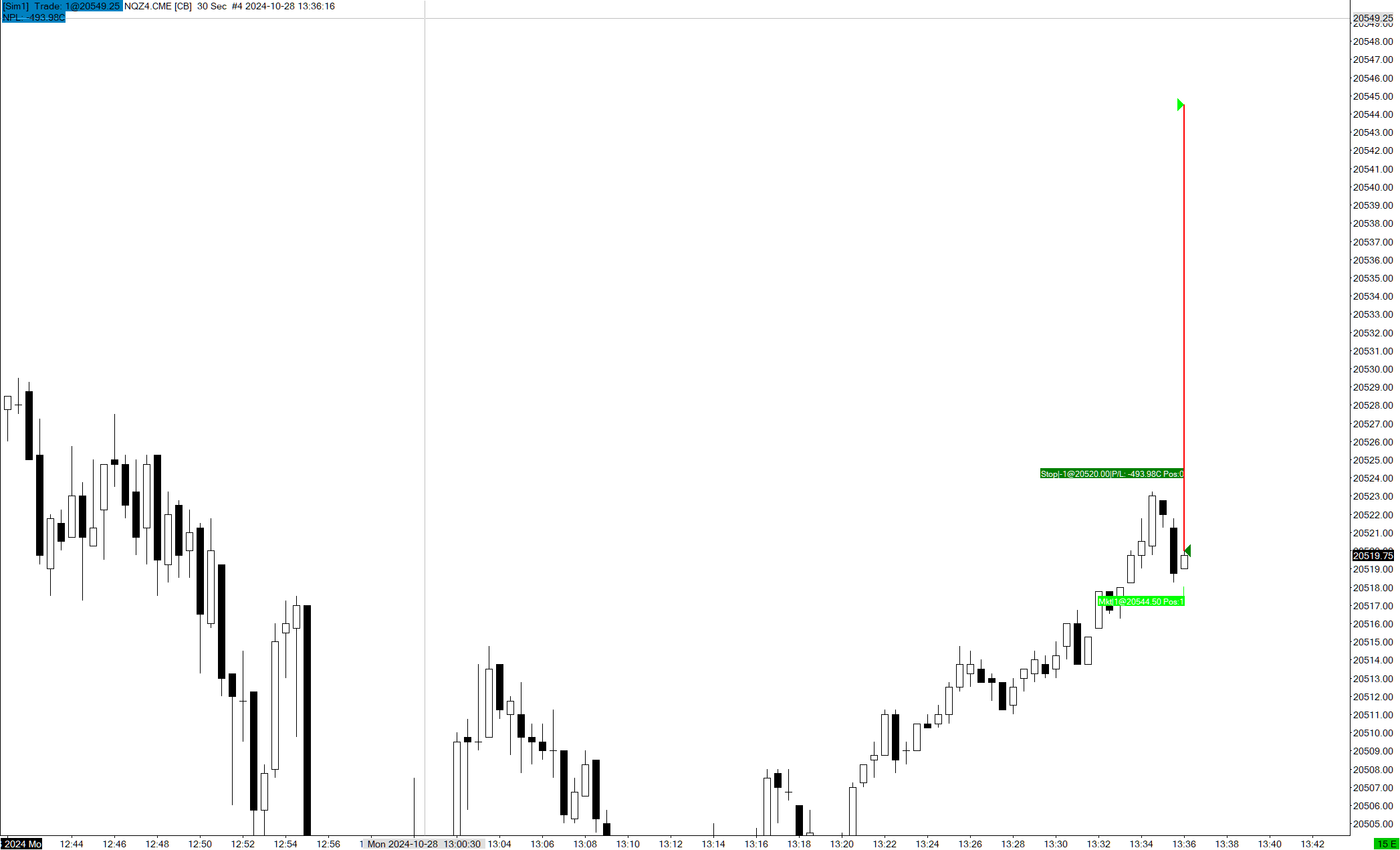 When I place a sim trade it will use the same wrong entry price. I did several NQZ4.CME sim trades yesterday and today and the entry price is consistently either 20005.00 or 20509.50 when the actual price was about 480 points higher/lower. I have no issue with live trades, only sim. Please see the attached trades list.